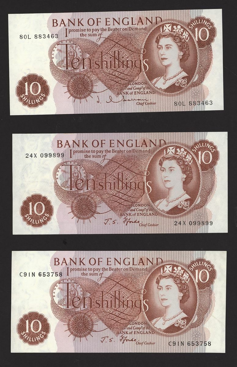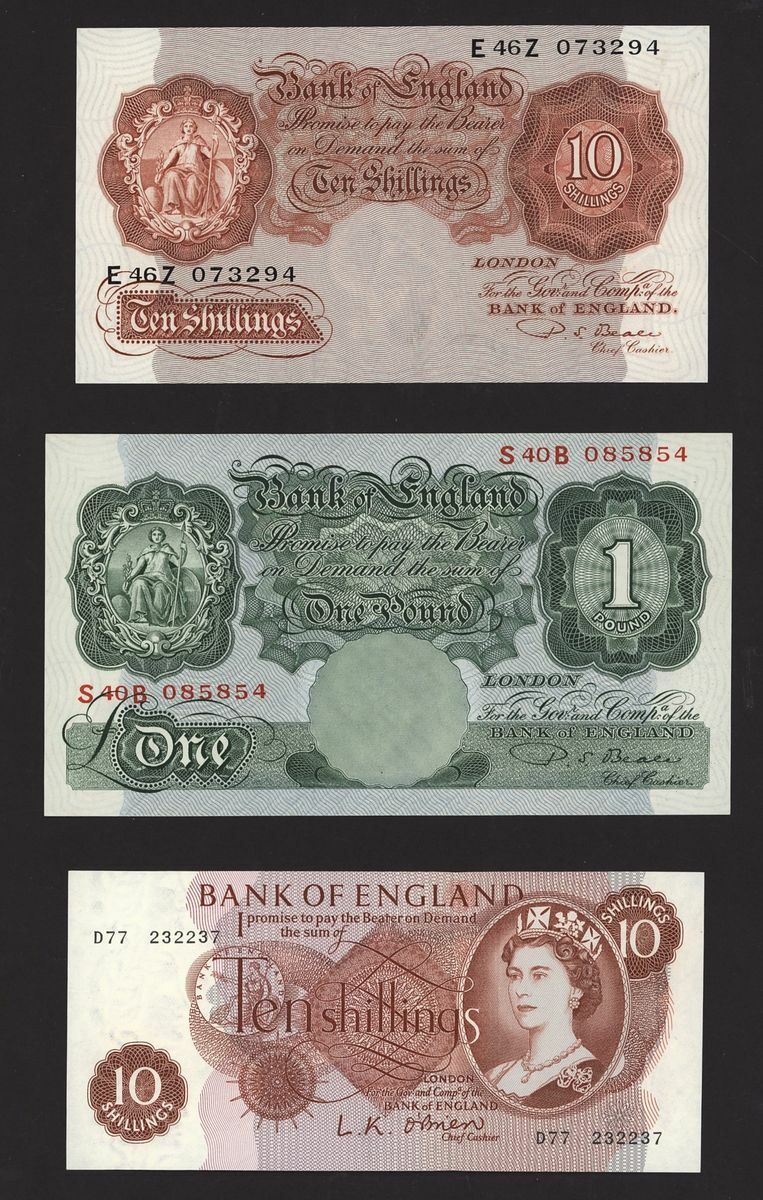 Bank of England, [7 notes] 10 Shillings, £1, 1950-67, (Pick 368b, 369b, 373a, 373b, 373c, 374e, EPM B266, 268, 286, 294, 305, 309, 310), uncirculated, counting crease (7 notes)