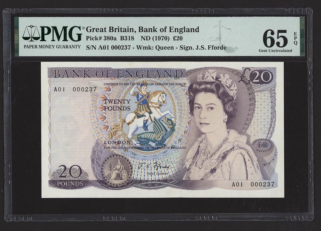 Bank of England, £20, ND (1970), first run £20 of Fforde's final banknotes; although signed by him, this issue was circulated after he had ceased to be Chief Cashier