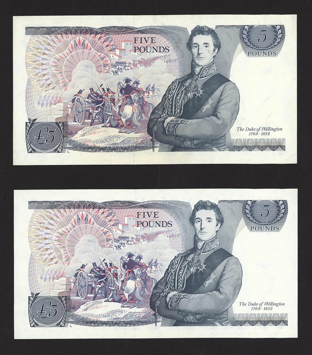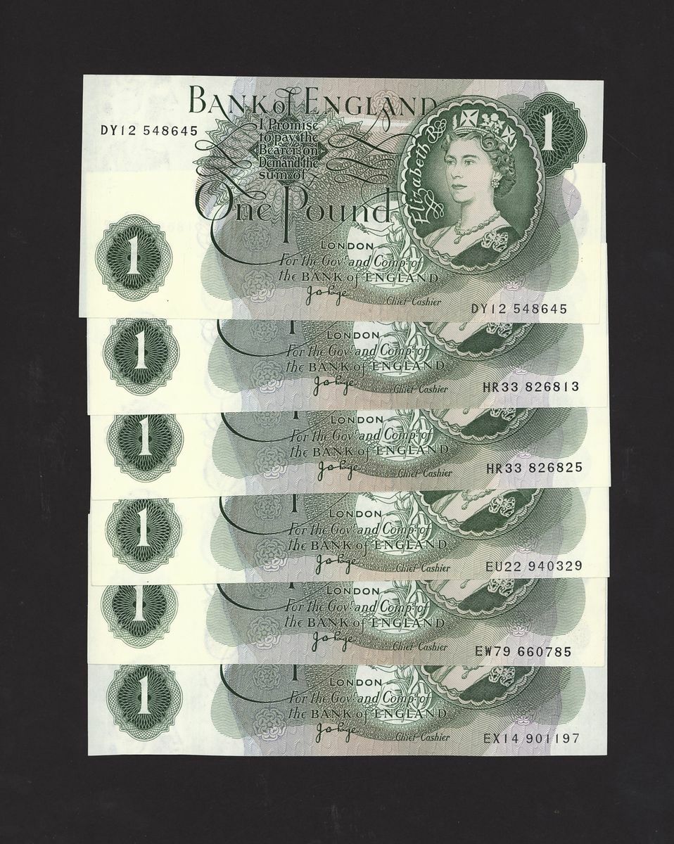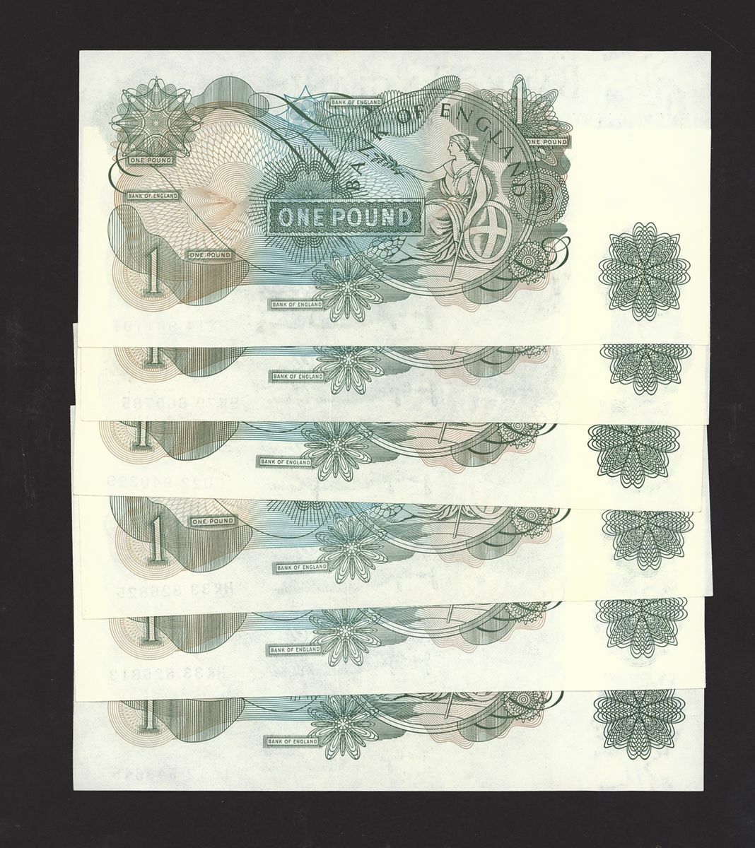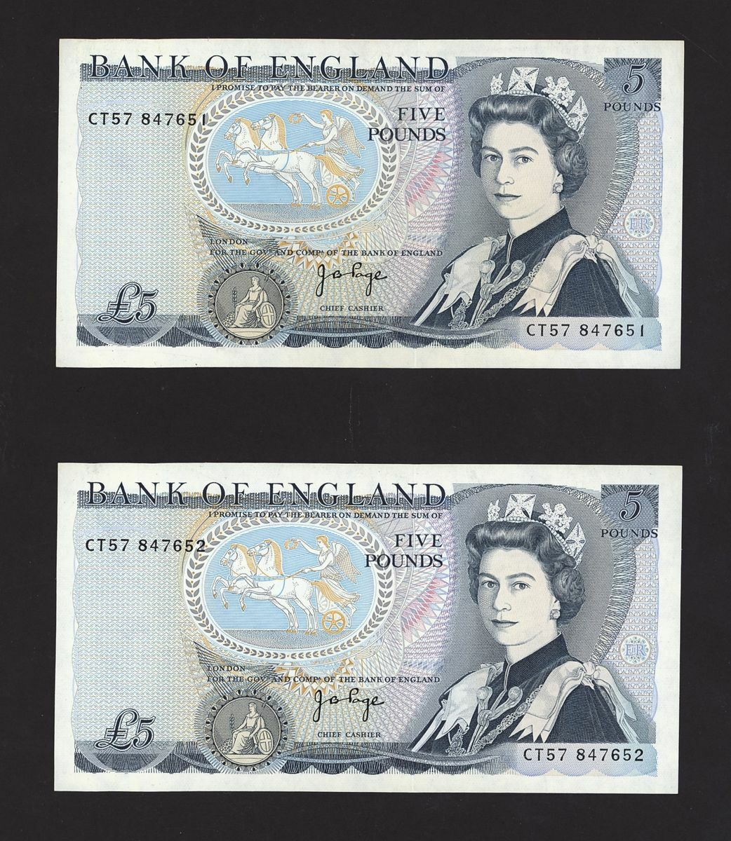 Bank of England, [8 notes] £1, £5, 1970-3, J. B. Page signature, including pair of consecutive serial numbers CT57 847651-2 (Pick 378)