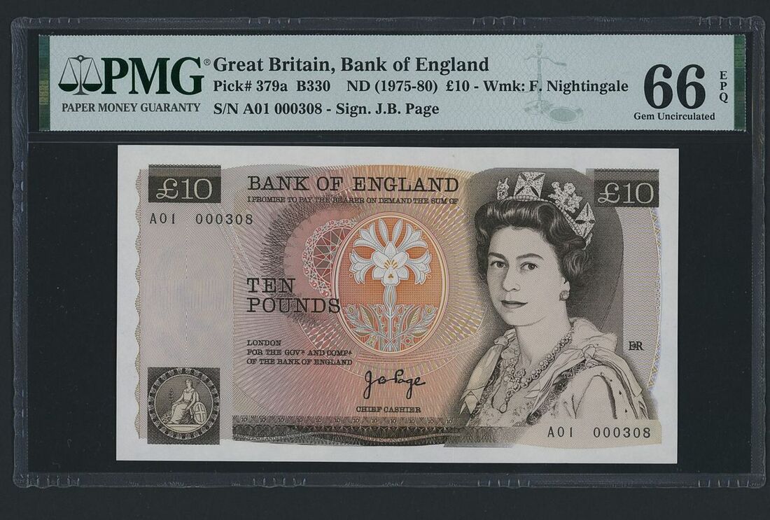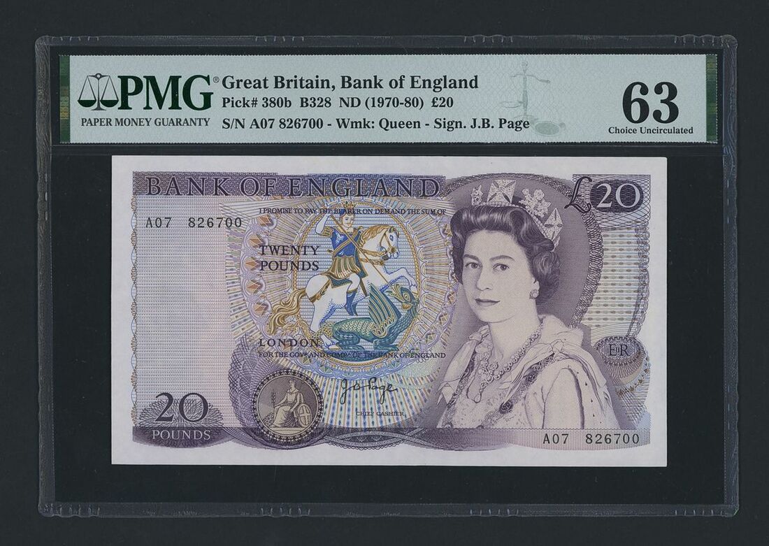 Great Britain, [3 notes] £5, £10, £20, 1970-75, J. B. Page signature, fantastic run of Page banknotes, including two first run notes with A01 prefixes