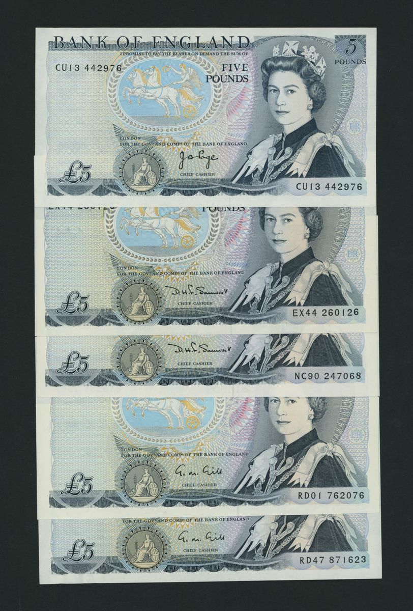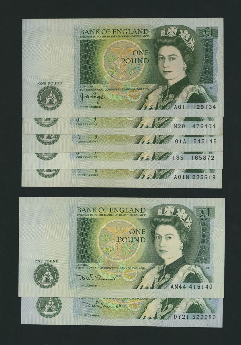 Bank of England, [18 notes] £1, £5, £10, 1971-1988, including two consecutive serial numbers AZ78 208752-3