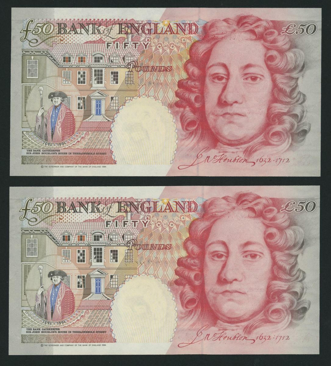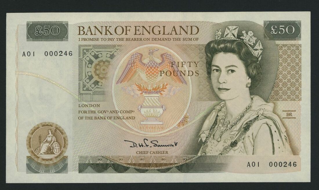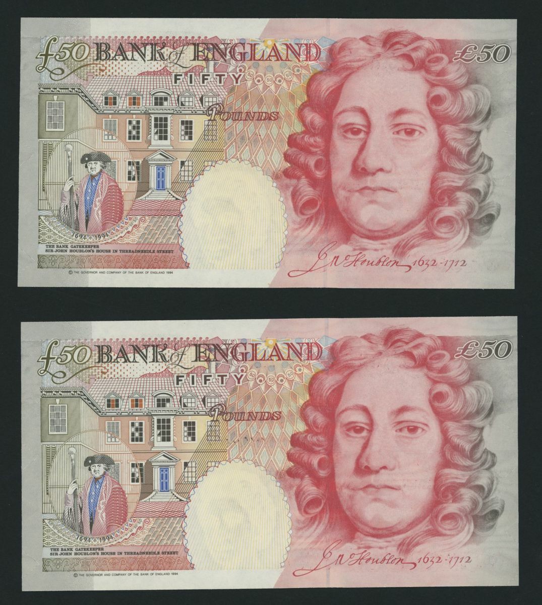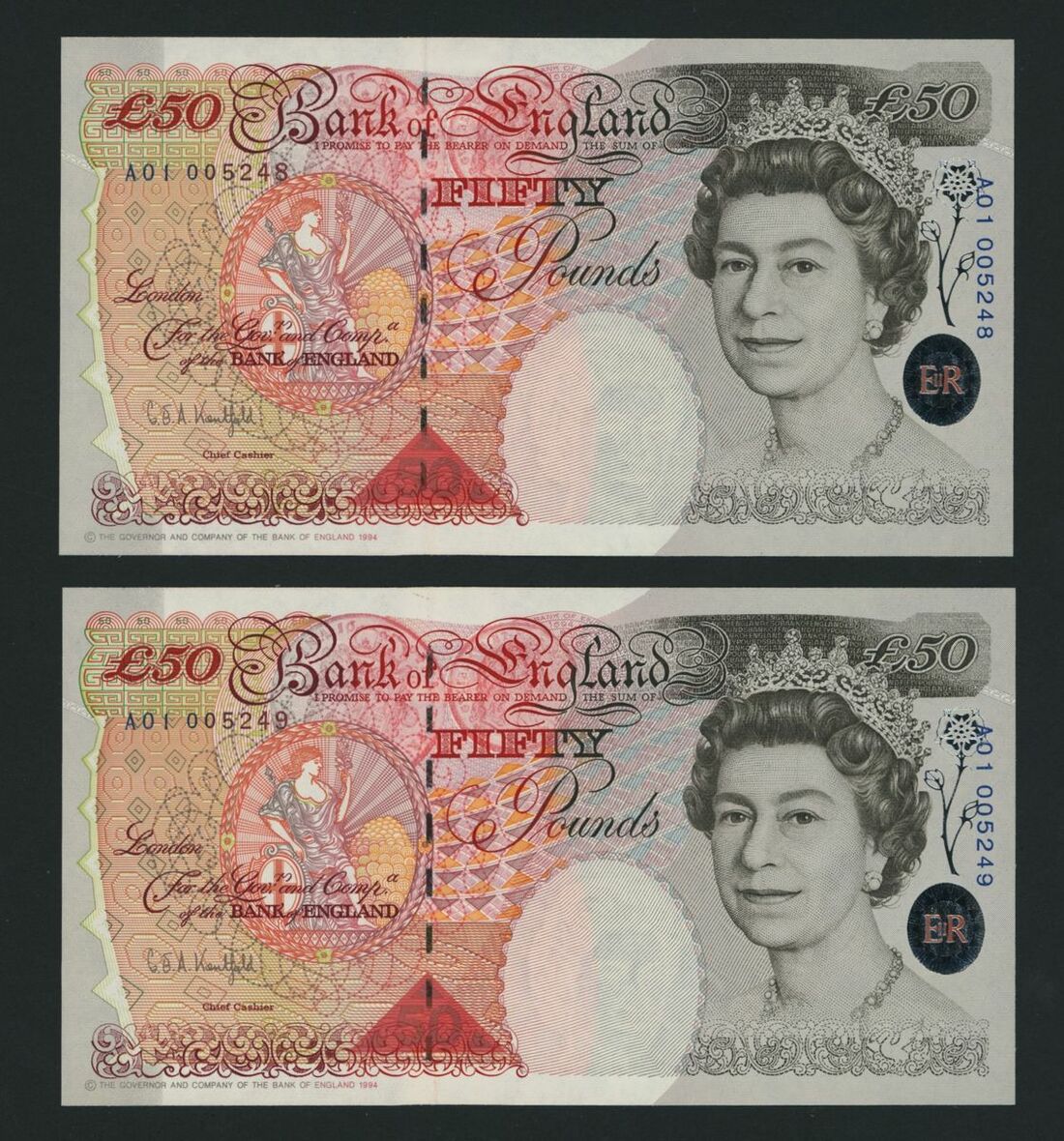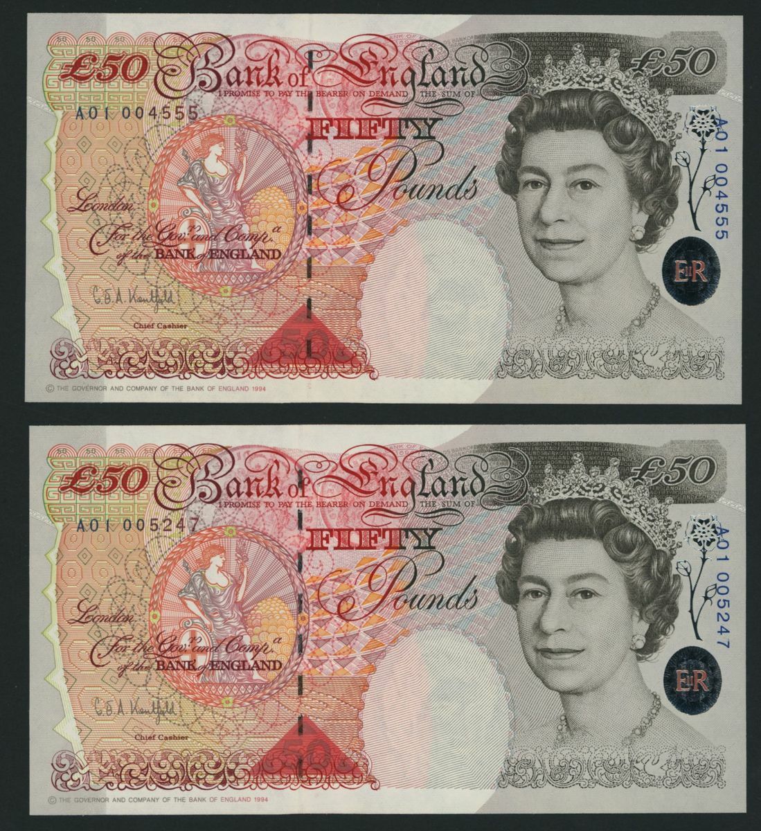Bank of England, [5 notes] £50, 1981-1994, first run notes, all notes are first run A01, including a group of three notes with consecutive serial numbers A01 005247--9