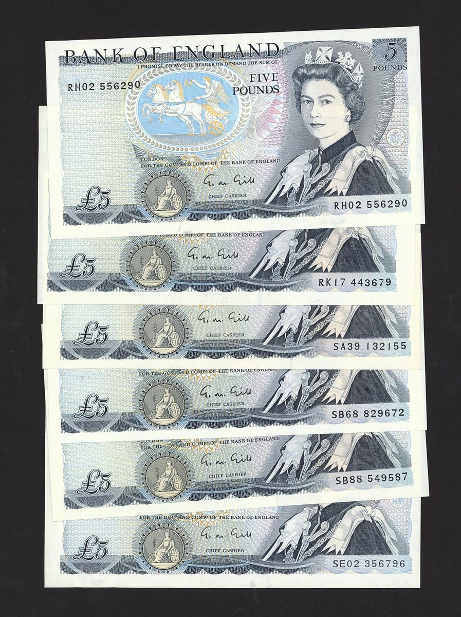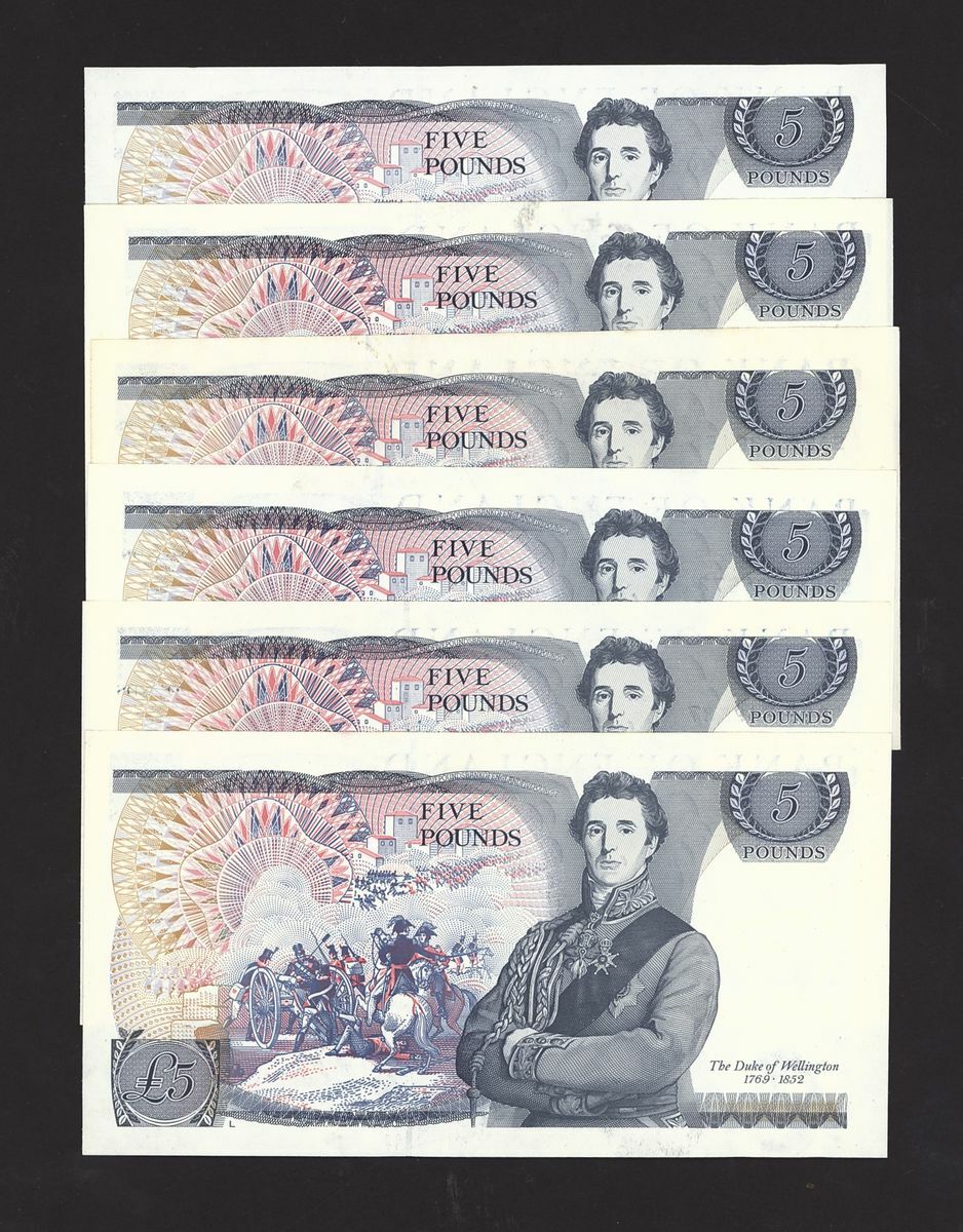Bank of England, [6 notes] £5, 1988, Gill signature, (Pick 378f, EPM B353), uncirculated, counting crease (6 notes)