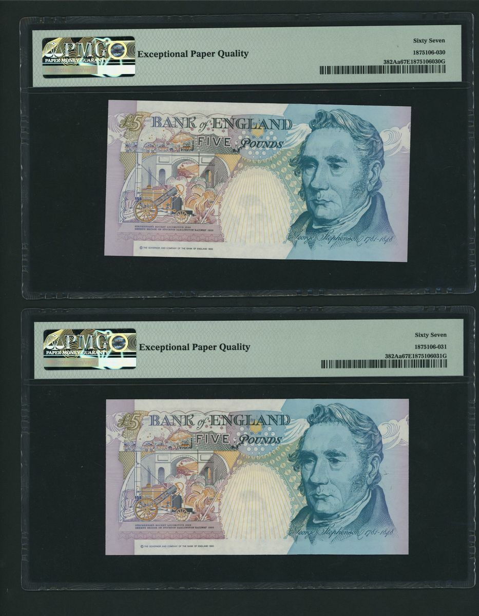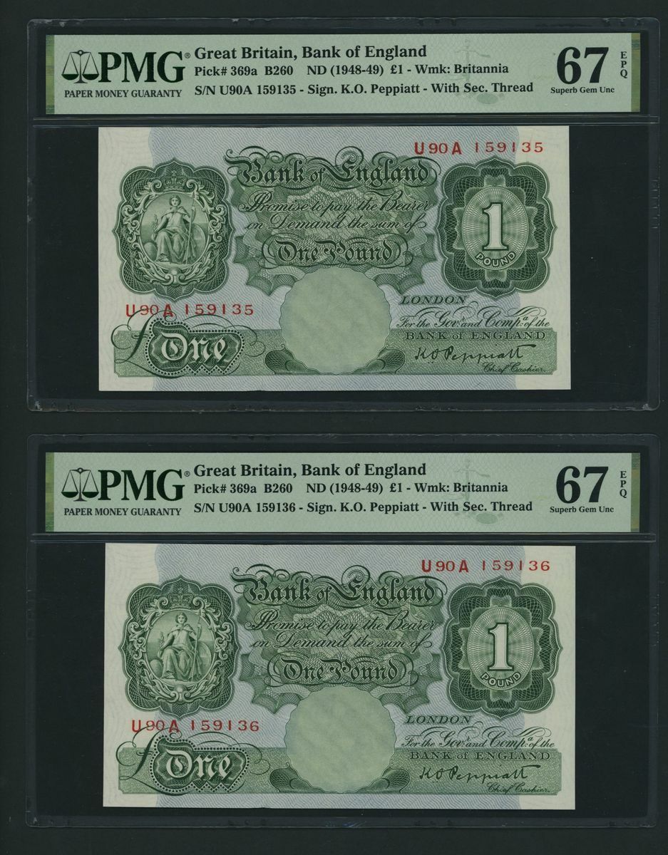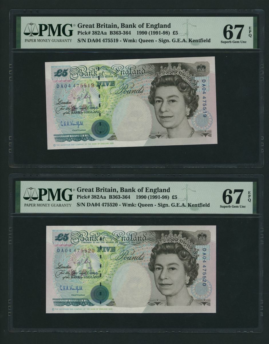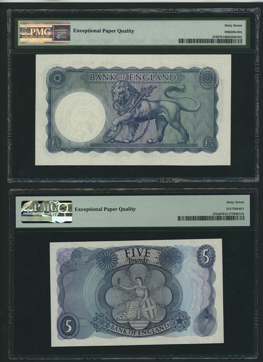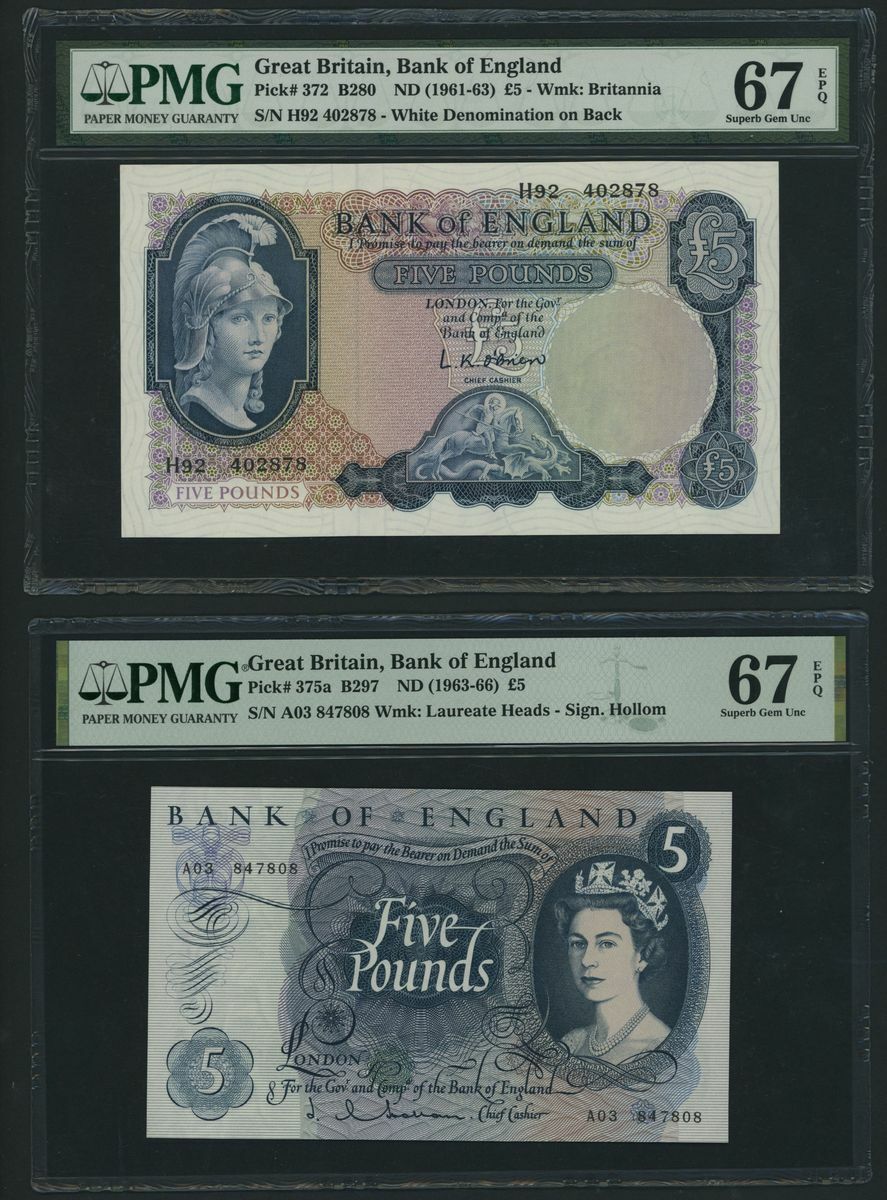 (x) Bank of England, [5 notes] £1, £5, 1948-1990, (Pick 382Aa, 369a, 372, 375a), all in PMG holders 67 EPQ Superb Gem Uncirculated (5 notes)