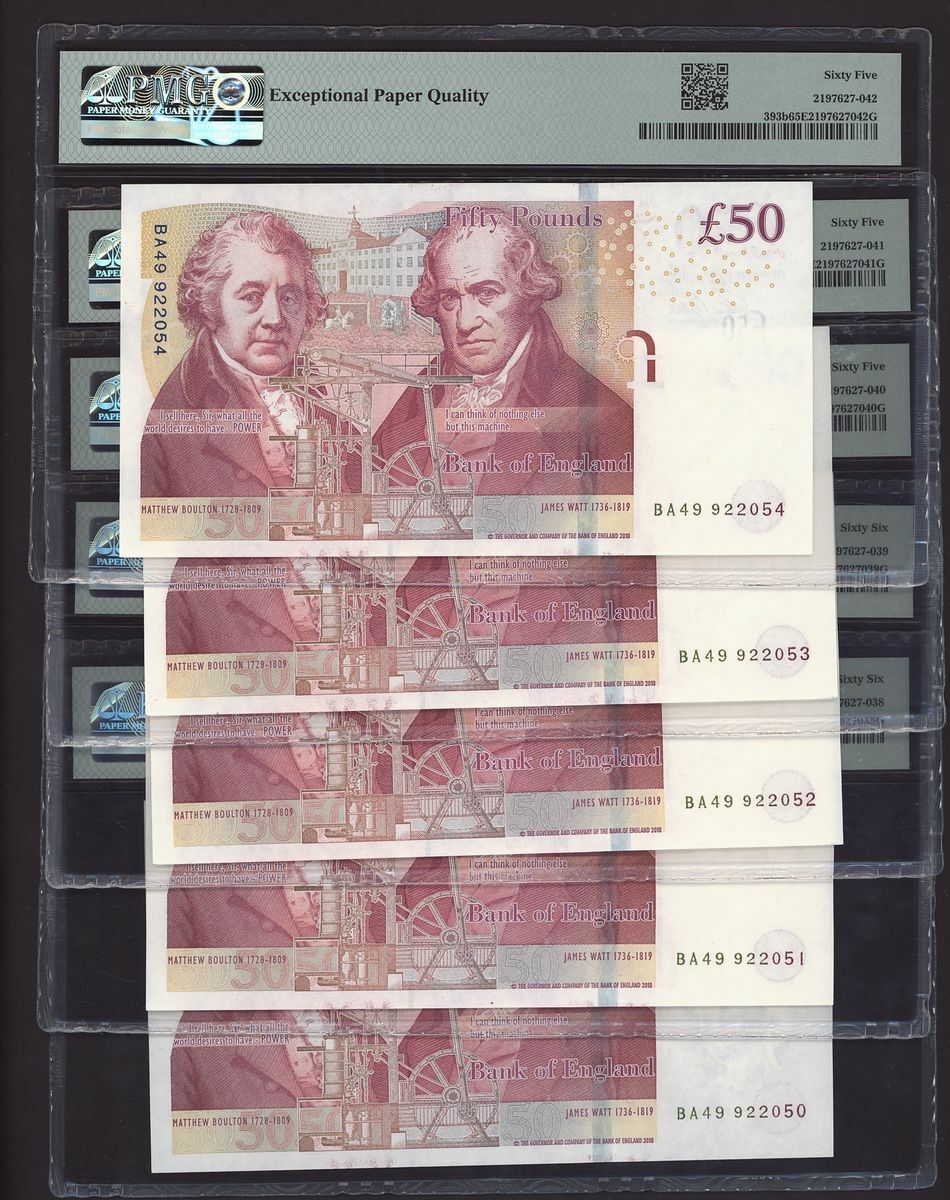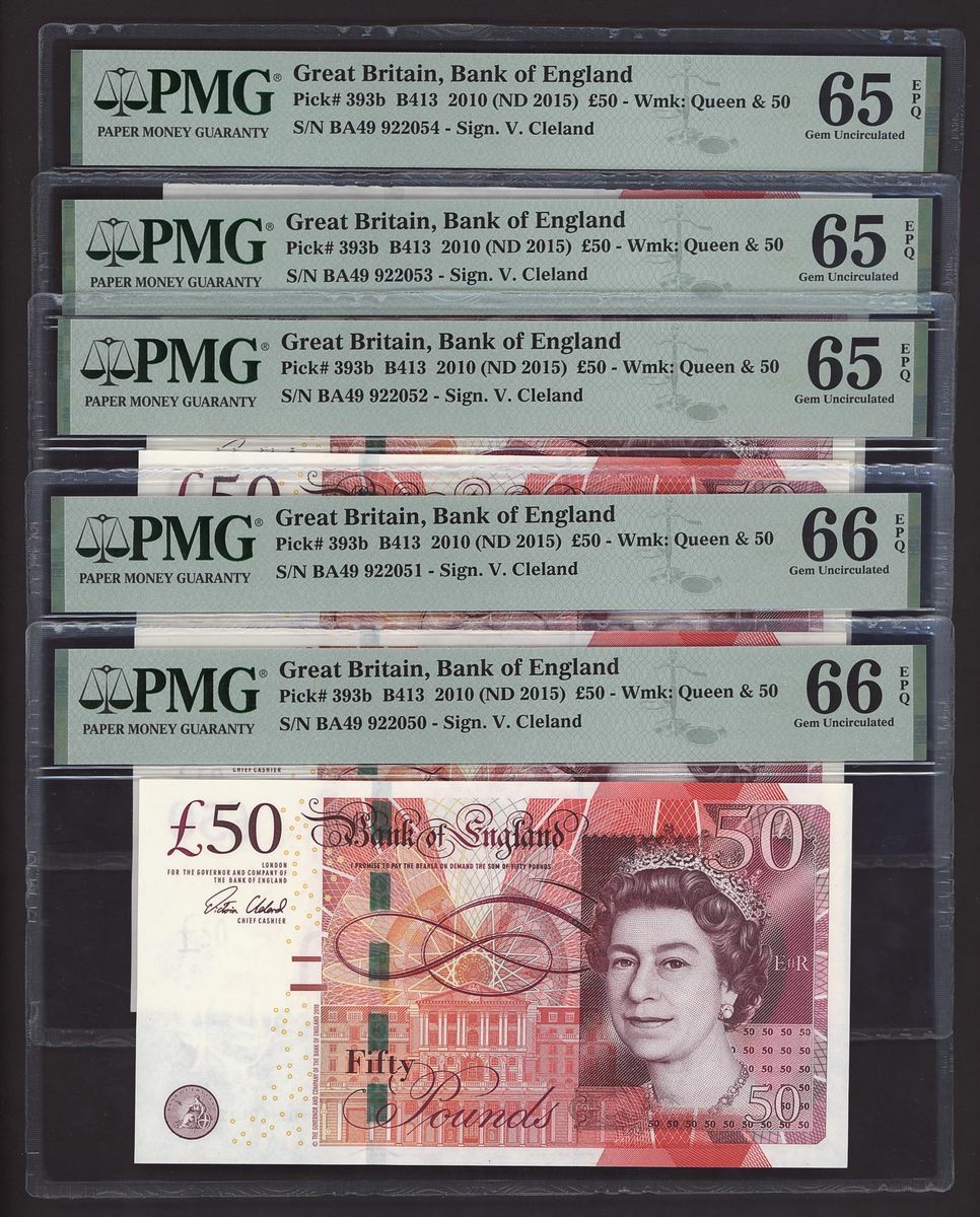 (x) Bank of England, [5 notes] £50, ND (2015), consecutive serial numbers 922050-922054