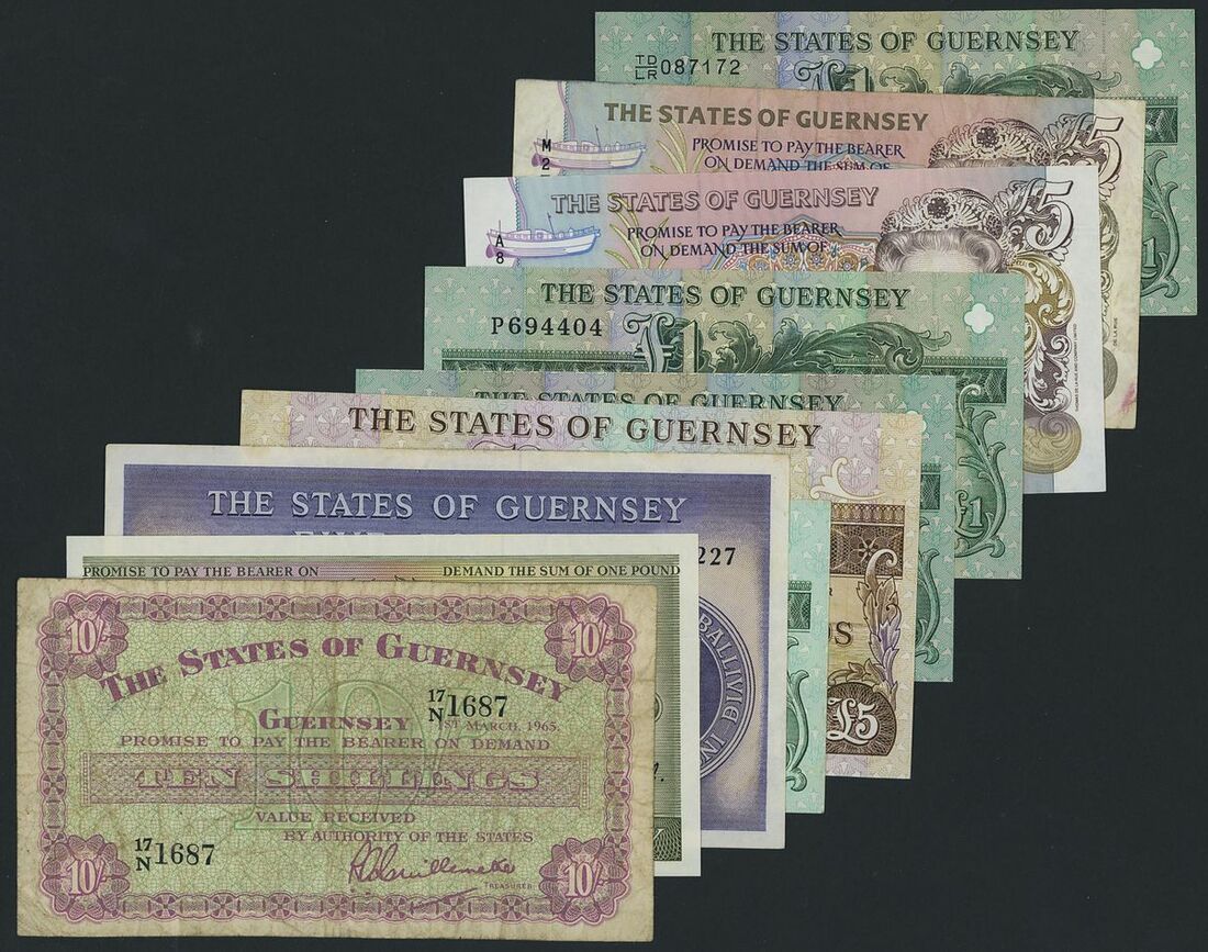 Guernsey, States of Guernsey, [10 notes] 10/-, £1, £5, 1965-2013, (Pick 42b, 45c, 46c, 48a, 49a, 52a, 52b, 56a, 60, 62), very fine to about uncirculated (10 notes)