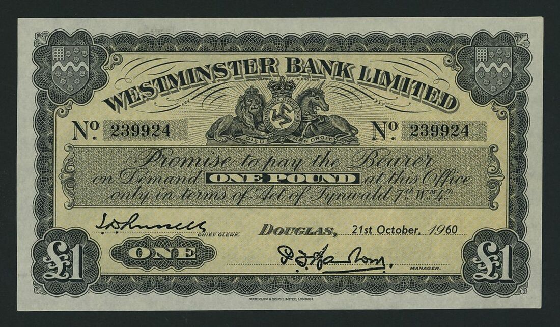 Westminster Bank Ltd., Isle of Man, £1, Douglas, 21st October 1960, serial number 239924, (Pick 23Ab), about uncirculated, slight folding to all four corners