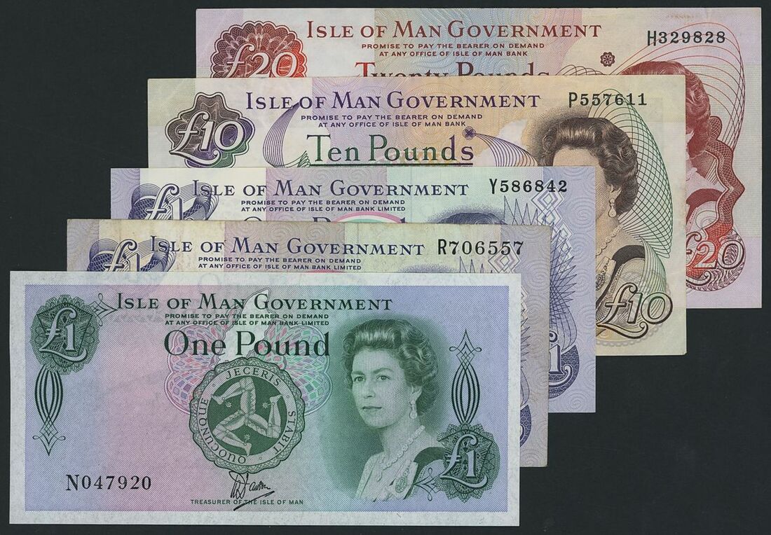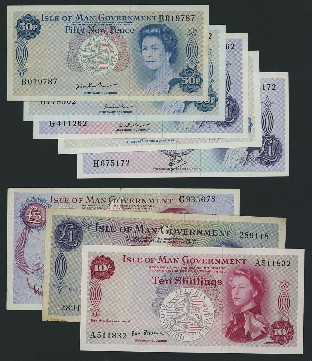 Isle of Man, [13 notes] 10/-, 50p, £1, £5, £10, £20, 1961-2000, (Pick 24b, 25a, 28b, 28b, 29d, 33a, 34a, 35a, 38a, 40a, 40b, 44b, 45b), fine to uncirculated (13 notes)