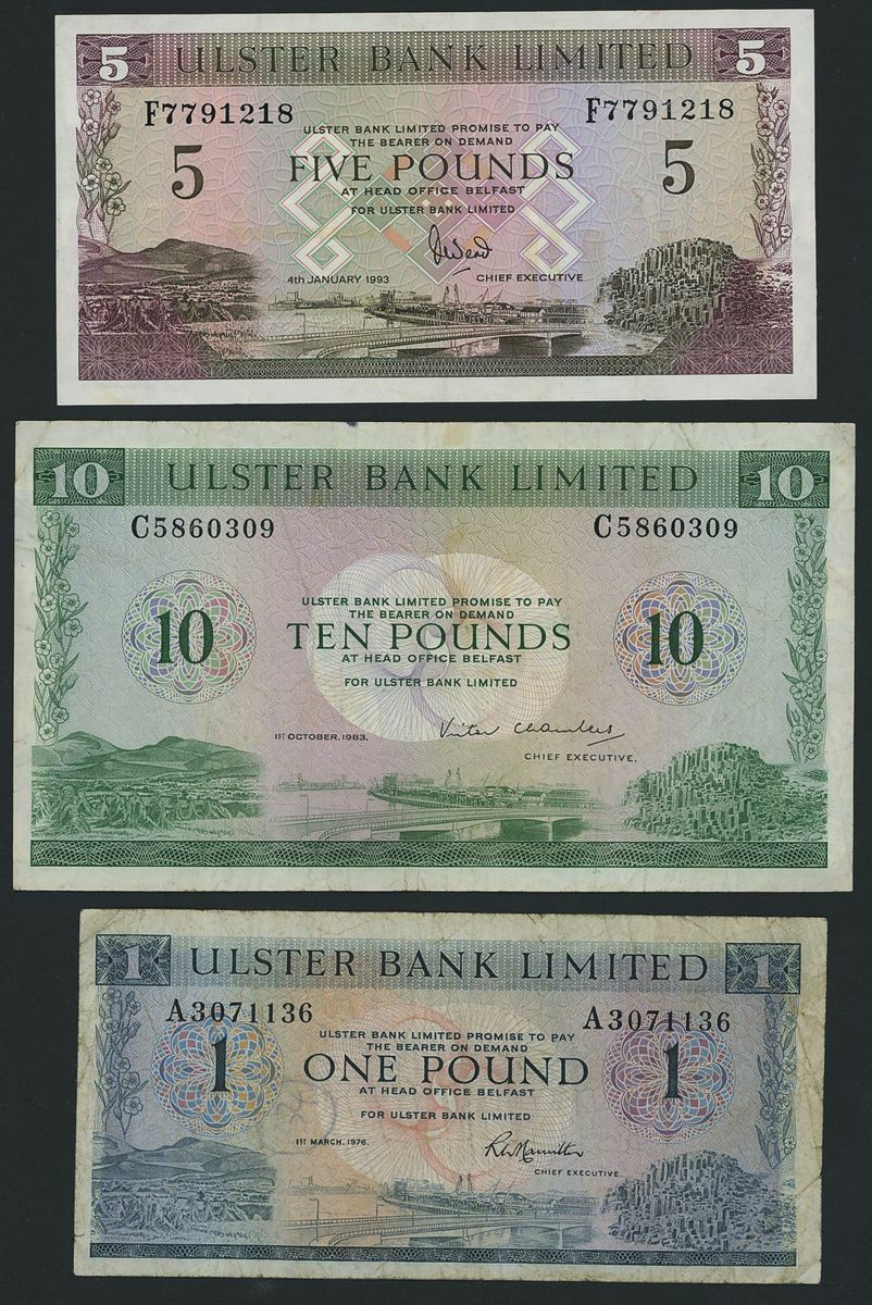 Northern Ireland, [22 notes] 10/-, £1, £5, £10, Belfast, 1938-2008, (PR 88, BA 105, 127, 128, 131, NR 113, 128, 128, 129, 133, UB 69, 75, 83, LTN 47, 54, 64, 70, 71, 75, 81, 85), very good to uncirculated, graffiti and ink present on three notes (22 notes)