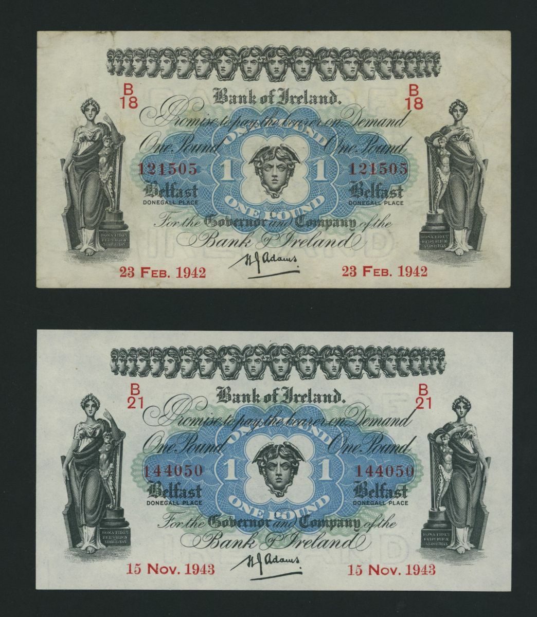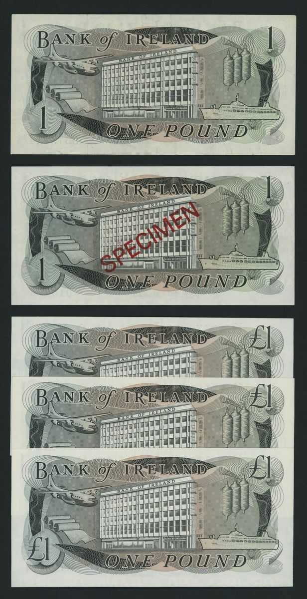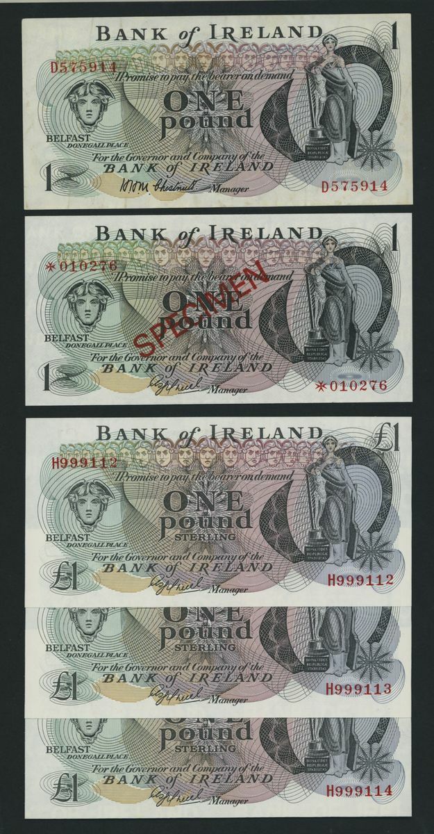 (x) Northern Ireland, Bank of Ireland, [7 notes] £1, Belfast, 1942-1983, including group of three consecutive serial numbers H999112-4 (P65) and one specimen note (P61)