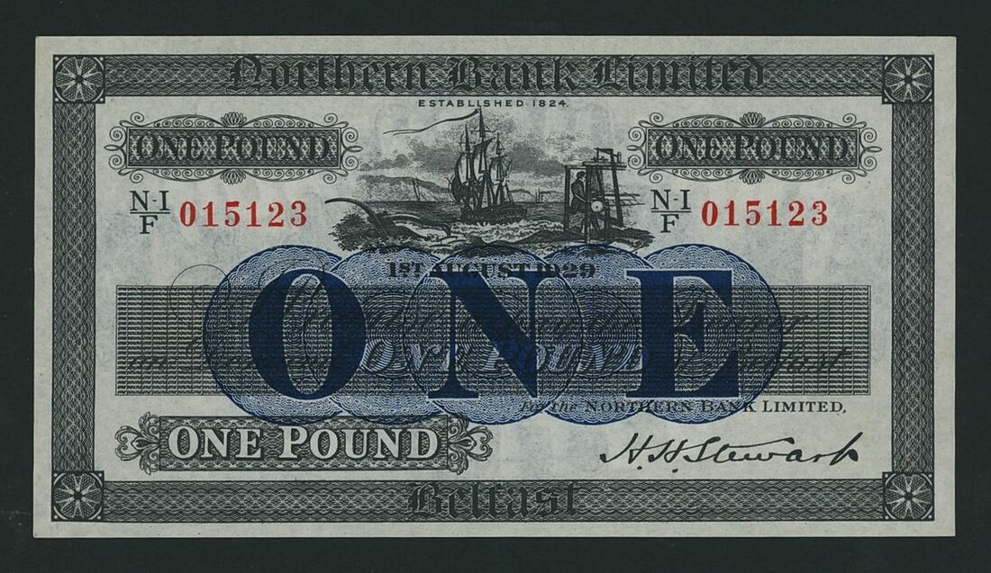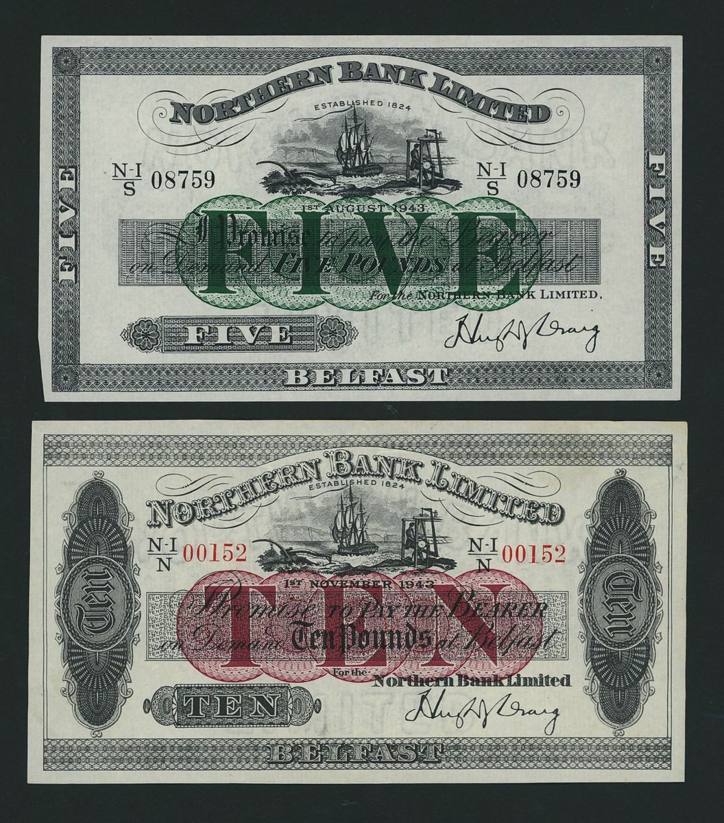 Northern Bank Ltd., Northern Ireland, [3 notes] £1, £5, £10, Belfast, 1929-43, £1, 1st August 1929, serial number NI/F 015123; £5, 1st August 1943, serial number NI/S 08759; £10, 1st November 1943, serial number NI/N 00152