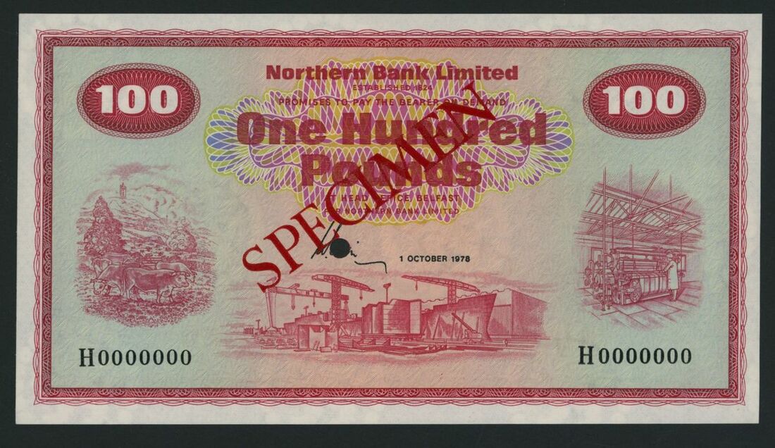 Northern Bank Ltd., Northern Ireland, specimen £100, 1st October 1978, serial number H0000000, (Pick 192ds, NR 111s, BNB 421), uncirculated