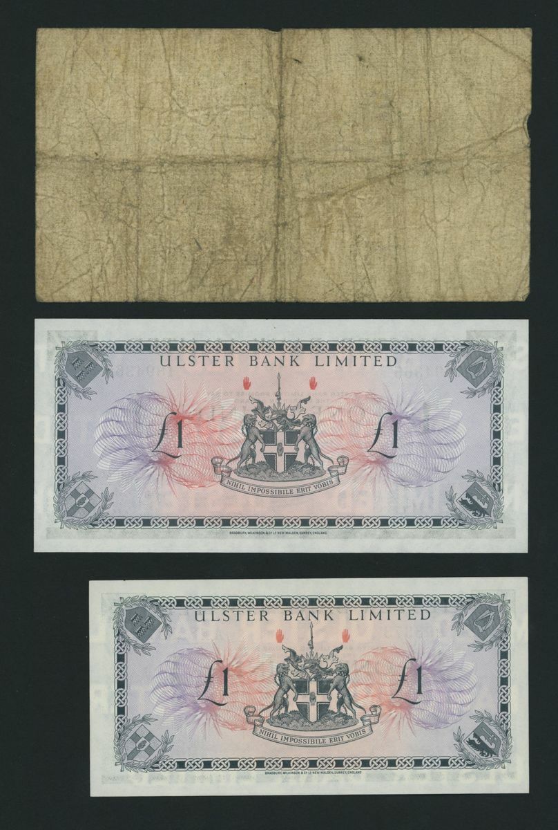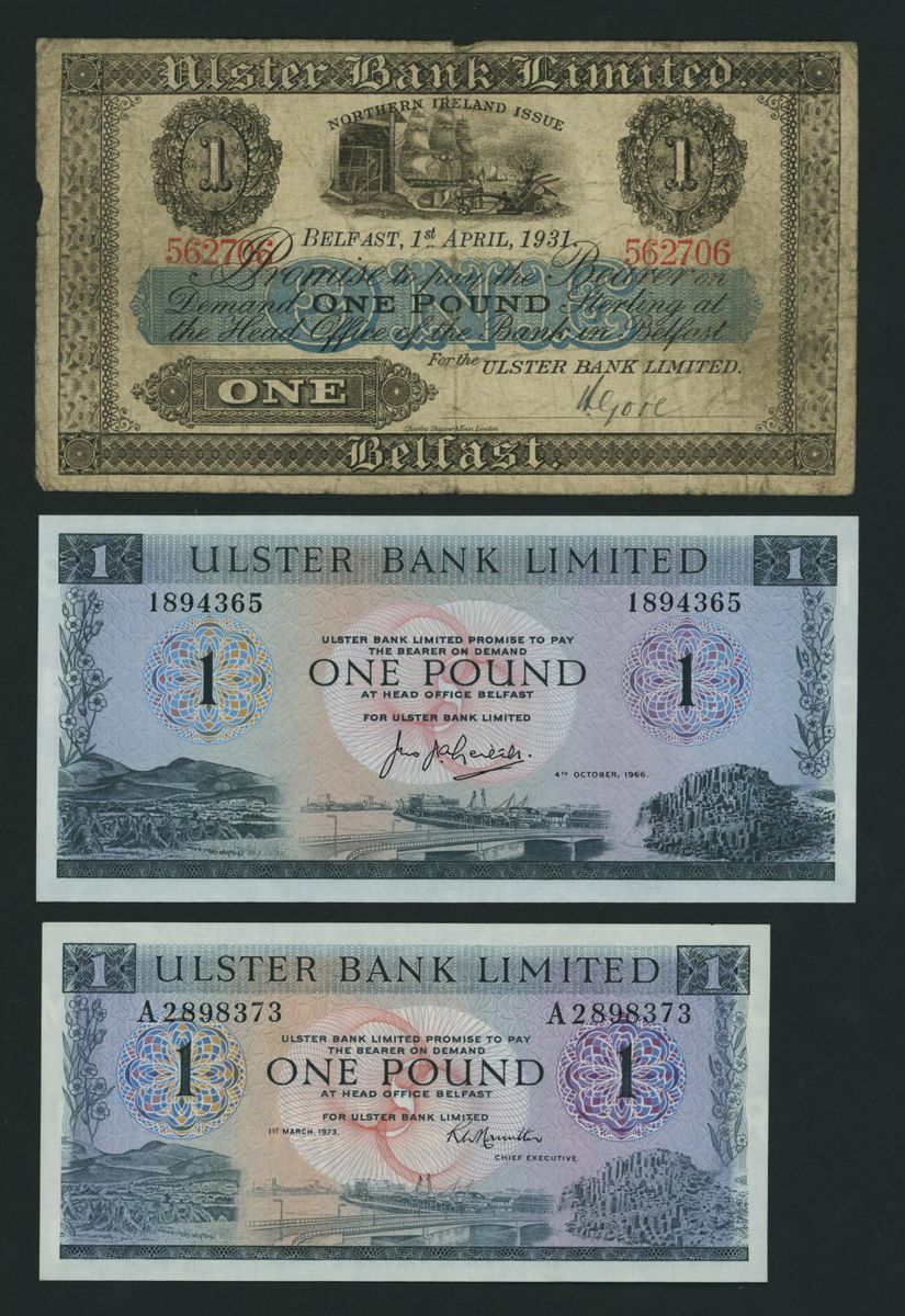 (x) Ulster Bank, Northern Ireland, [3 notes] £1, Belfast, 1931-1973, (Pick 306, 321, 325b, UB 47b, 64, 69), very good to about uncirculated (3 notes)