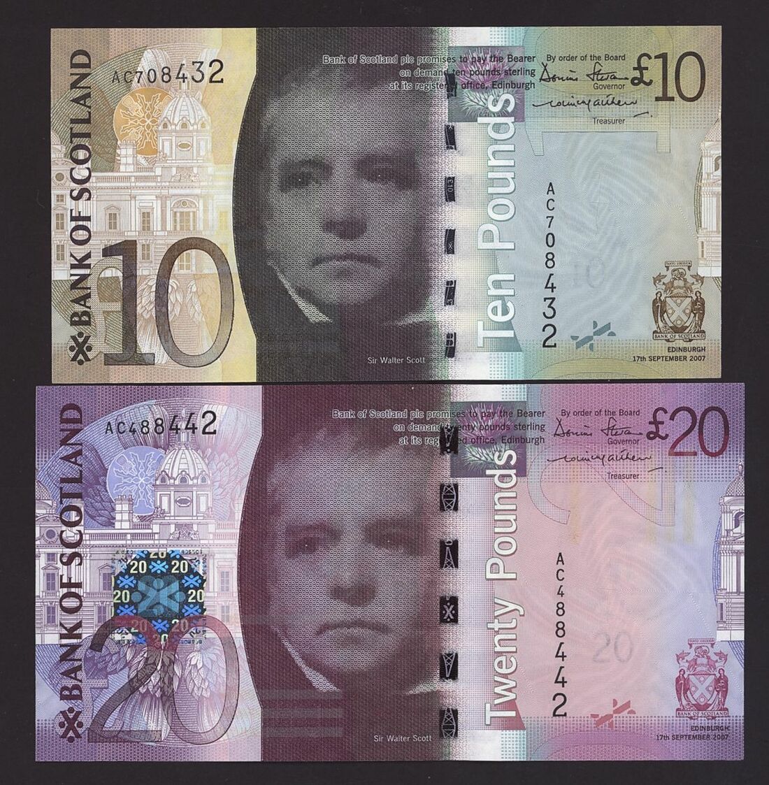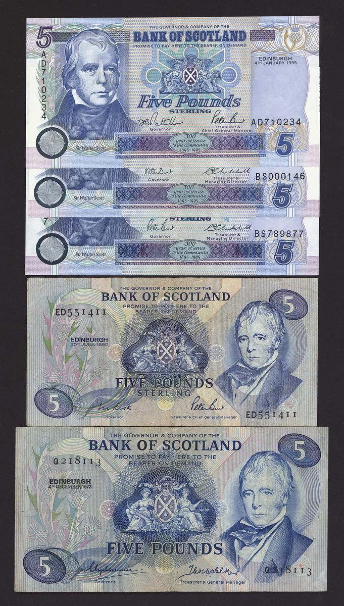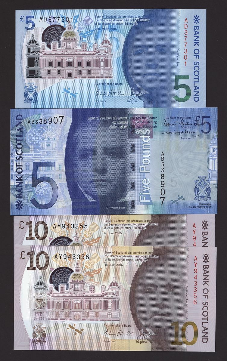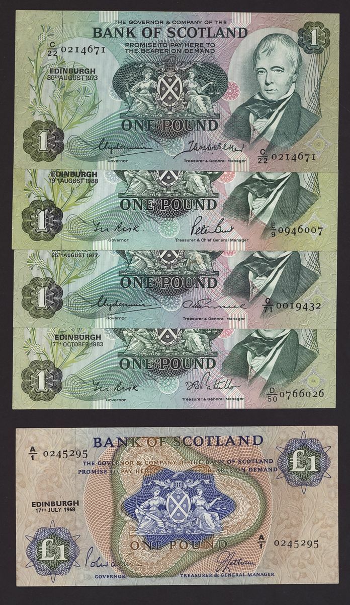 Bank of Scotland, [21 notes] £1, £5, £10, £20, 1968-2016, including a pair of consecutive serial numbers for notes BA 134a: YA943355-6