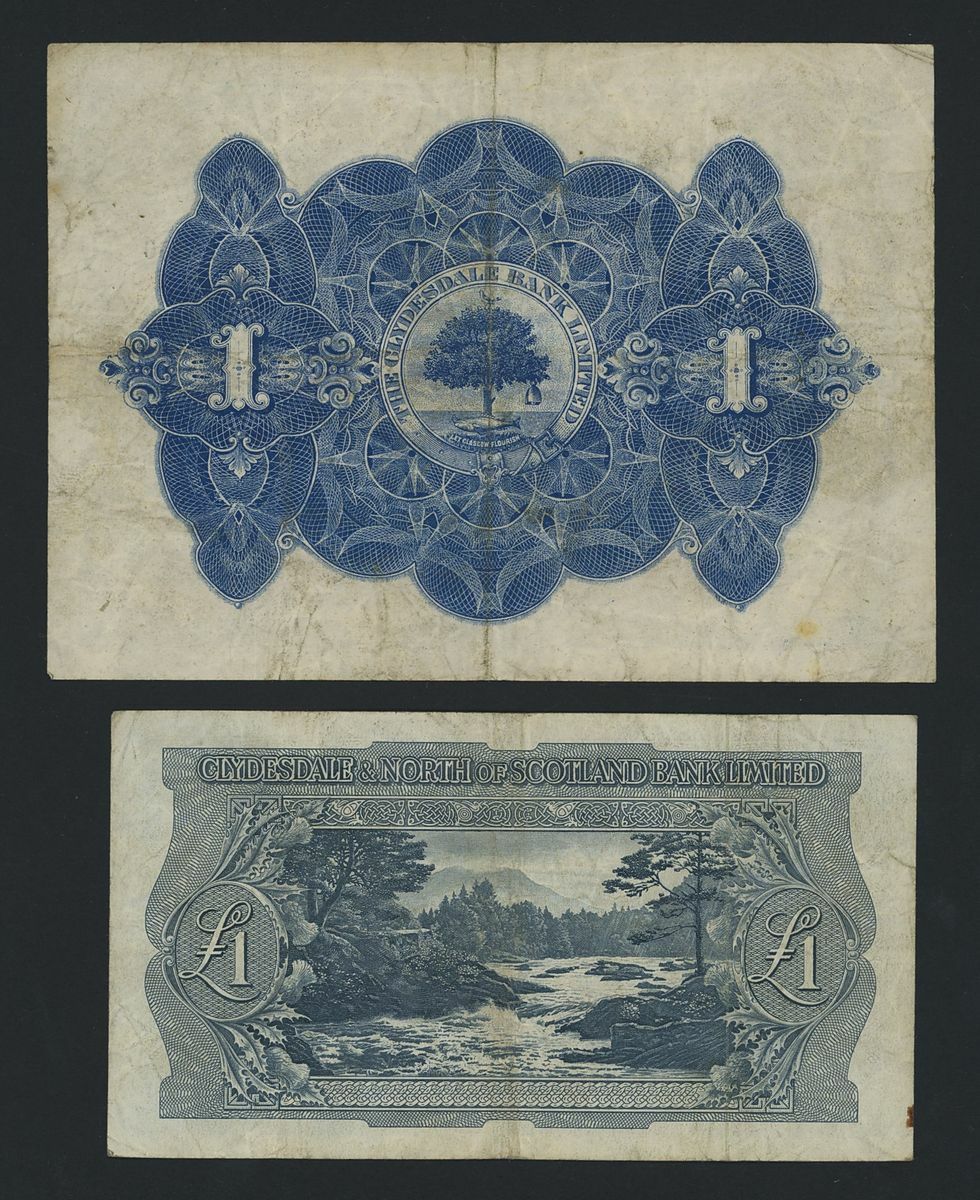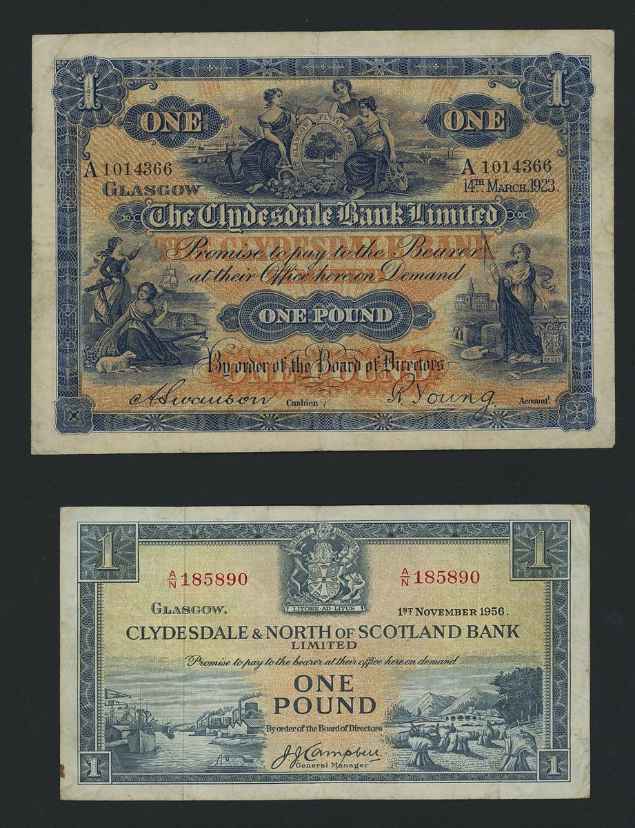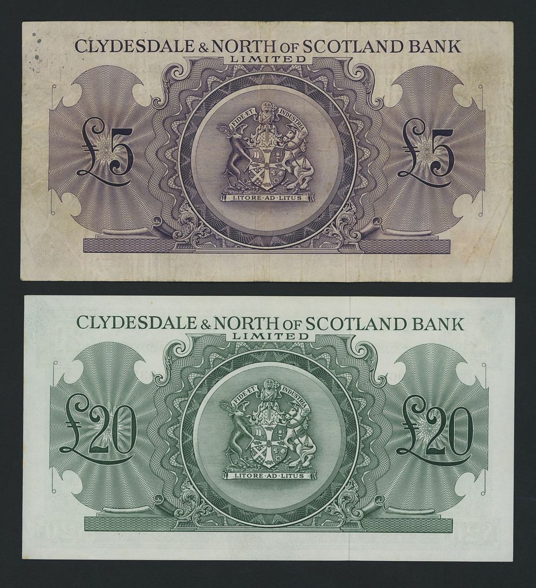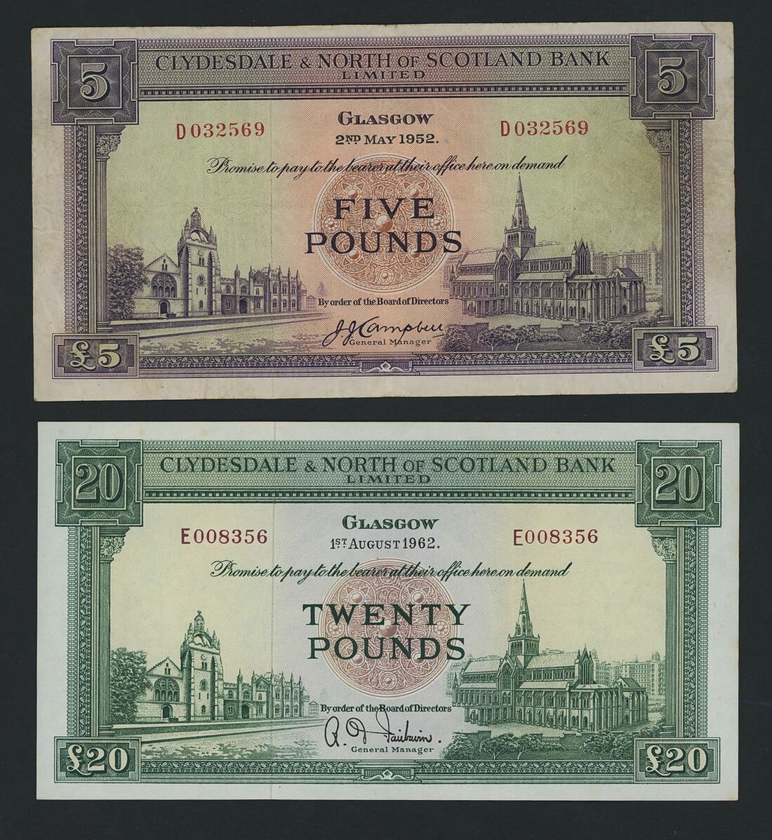 Scotland, Clydesdale, [4 notes] £1, £5, £20, Glasgow, 1923-1961, (CL 18b, 24b, 25a, 26c), very fine to about uncirculated, foxing (4 notes)