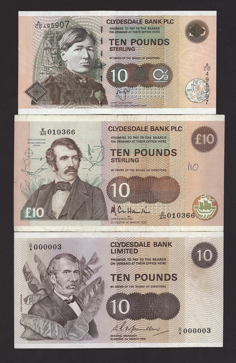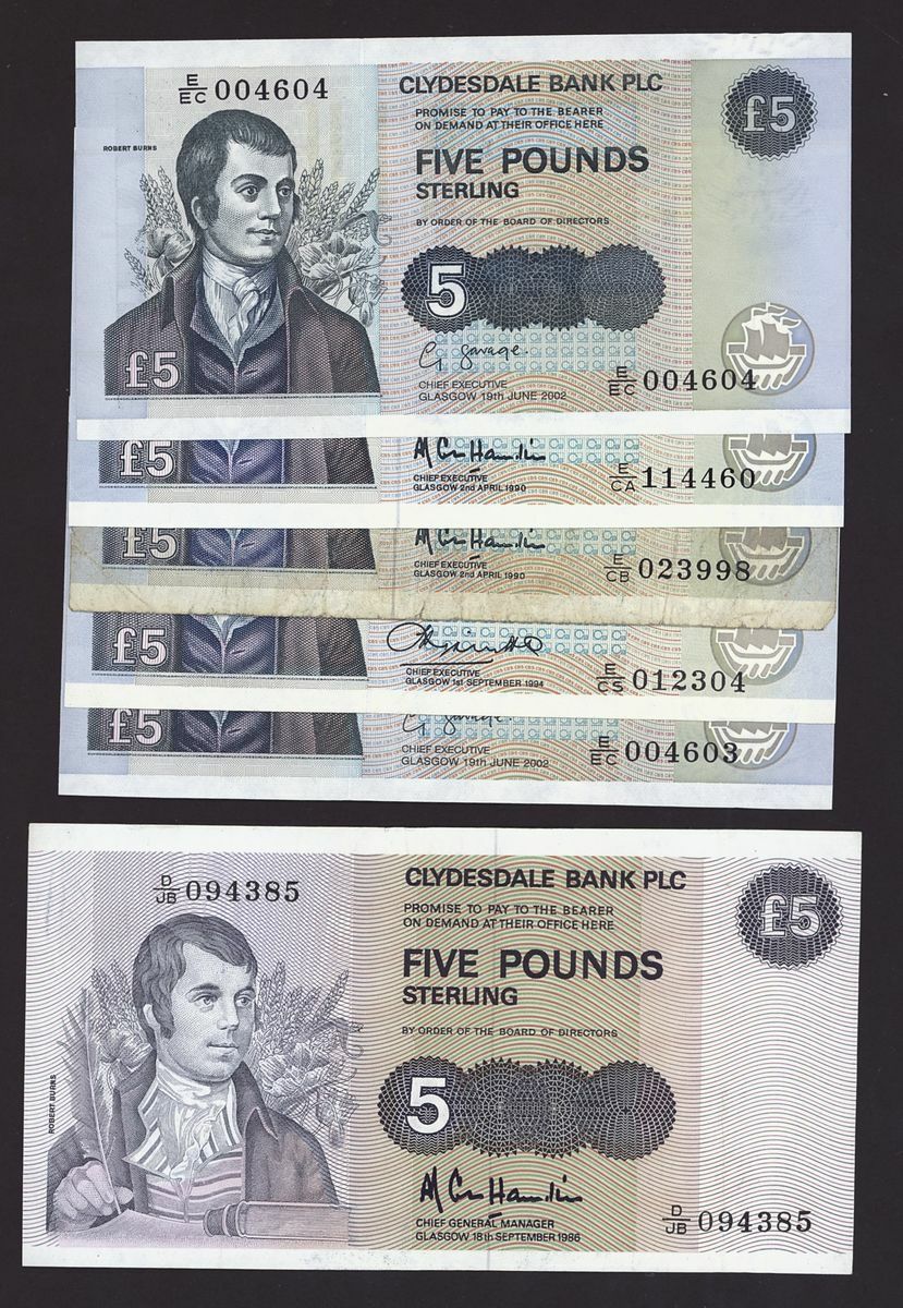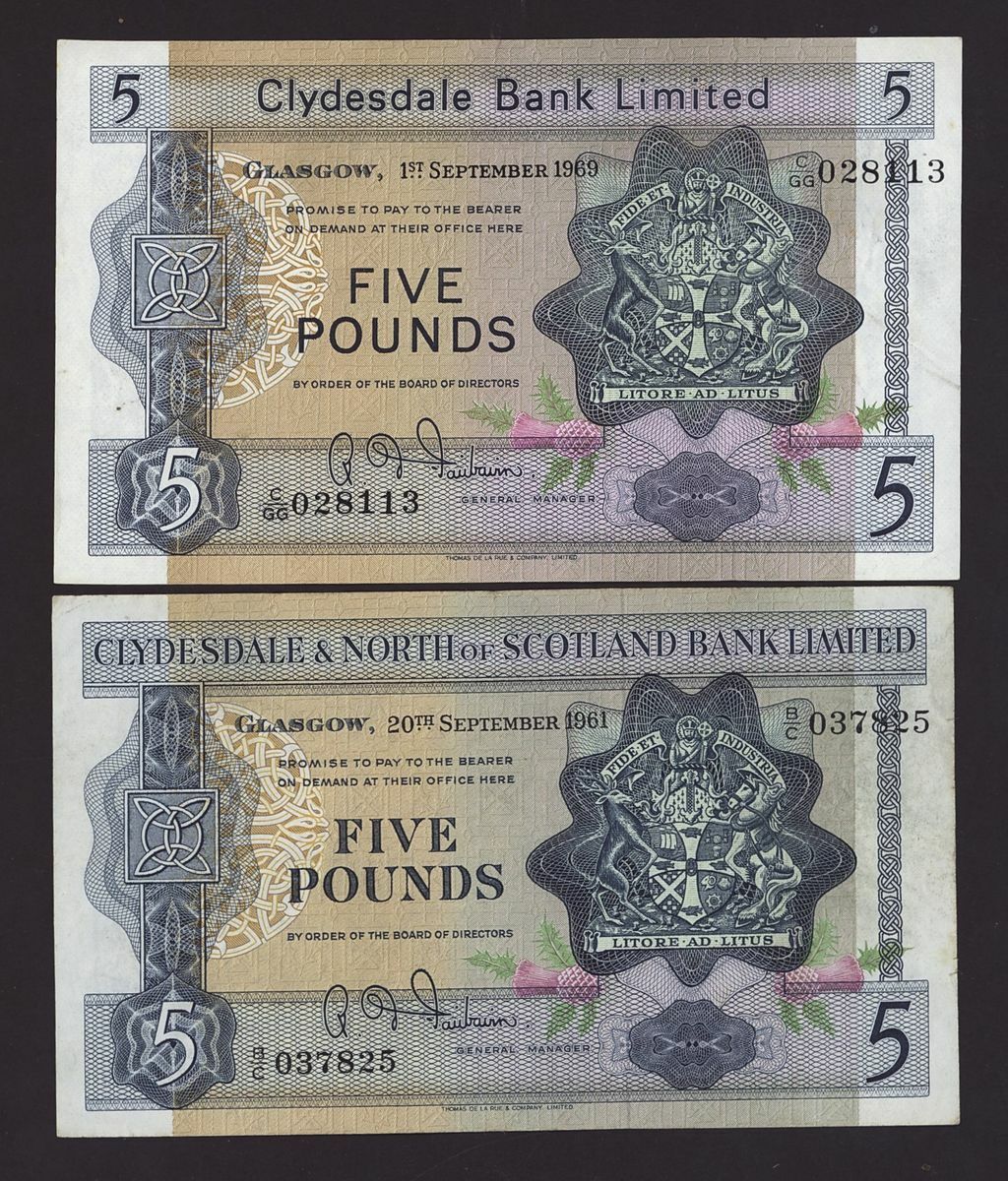Scotland, Clydesdale, [23 notes] £1, £5, £10, £20, 1949-2015, including two consecutive serial numbers E/EC 004603-4 (CL 48d)