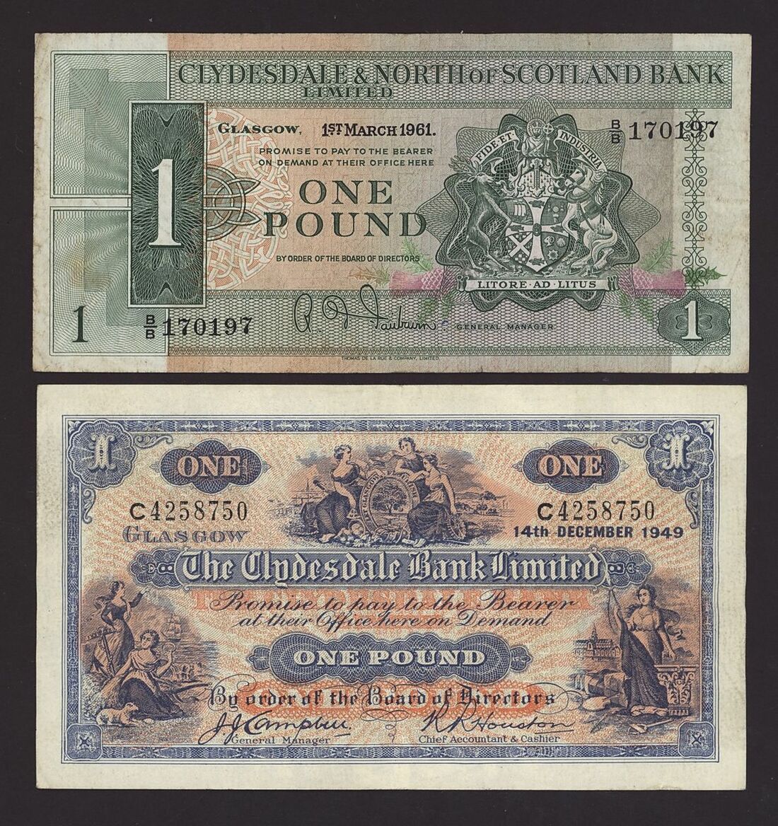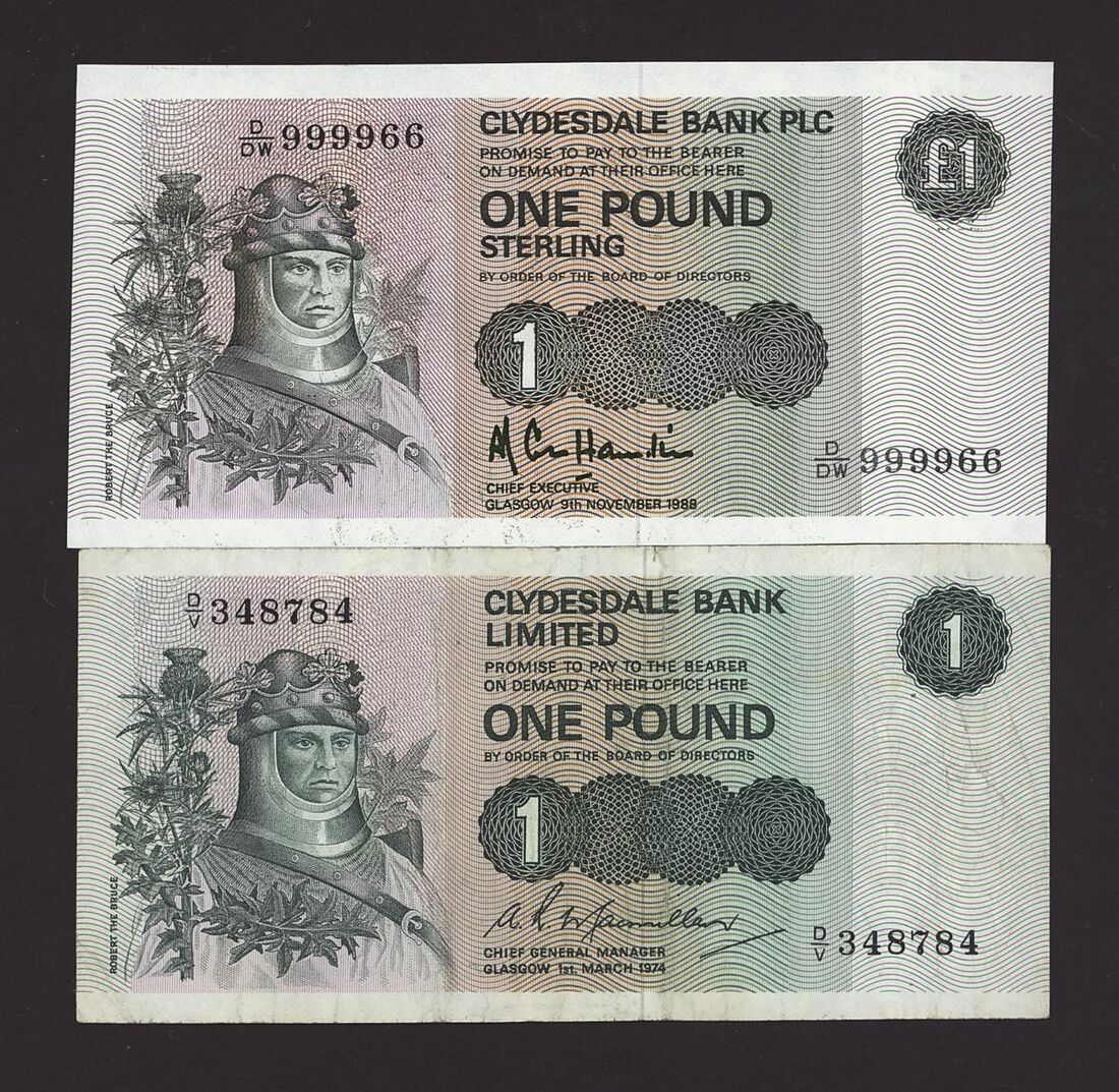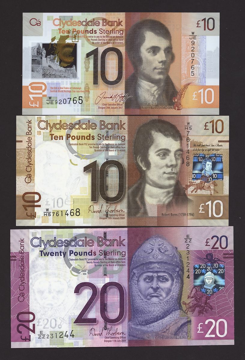 Scotland, Clydesdale, [23 notes] £1, £5, £10, £20, 1949-2015, including two consecutive serial numbers E/EC 004603-4 (CL 48d)
