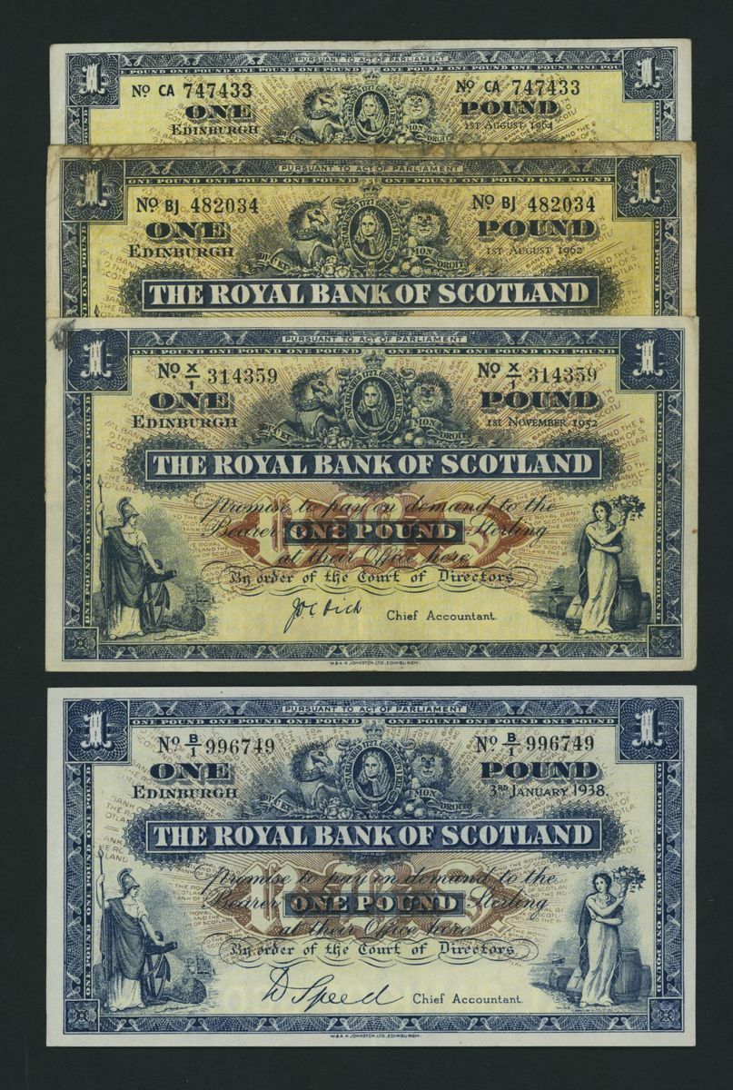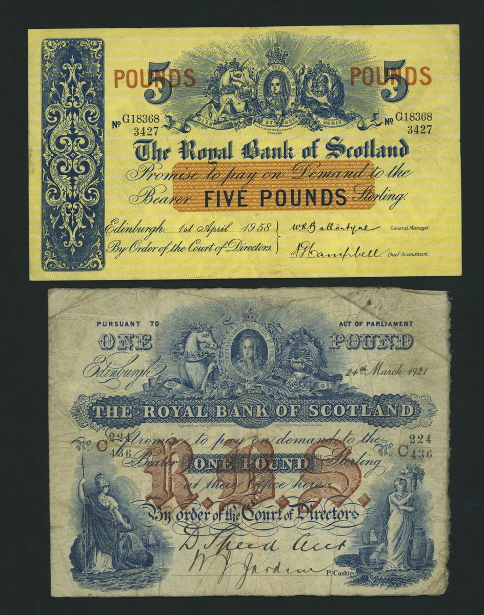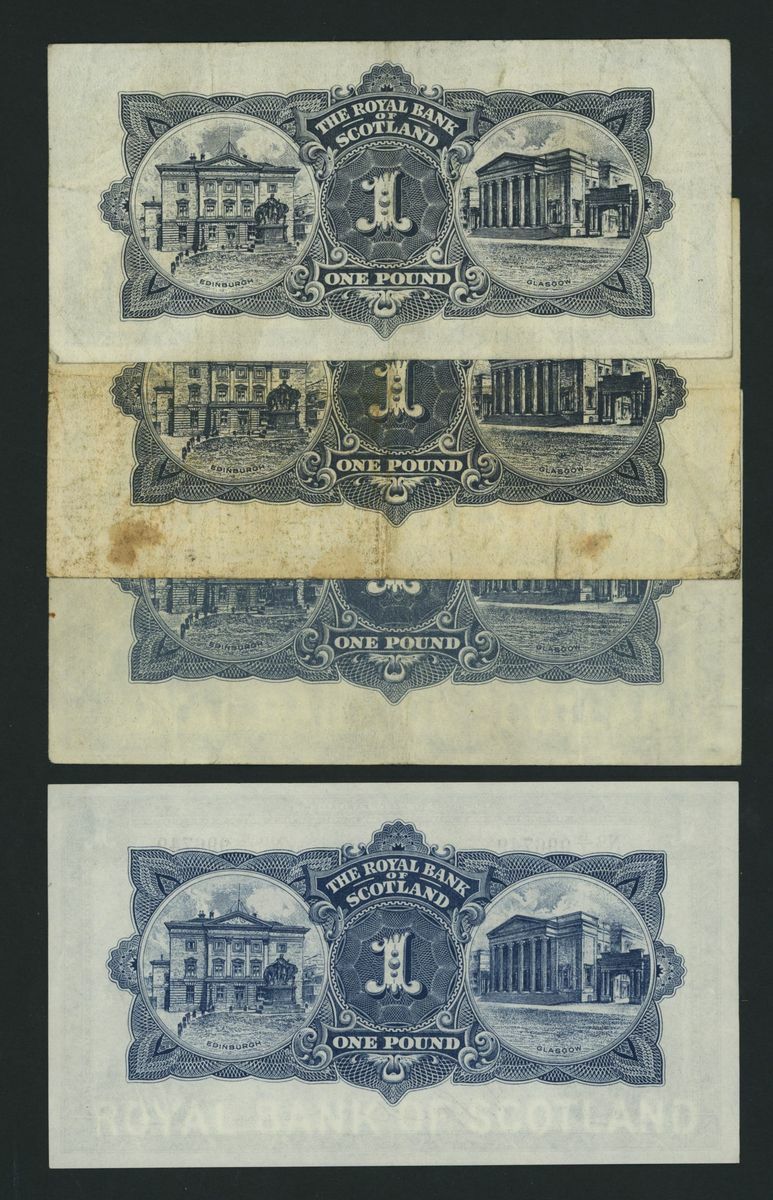 Royal Bank of Scotland, [7 notes] £1, £5, £20, 1921-1964, (RB 53g, 55b, 55e, 55h, 55h, 58e, 61f), good fine to extremely fine, some graffiti present on two notes (7 notes)