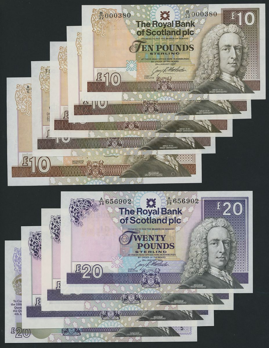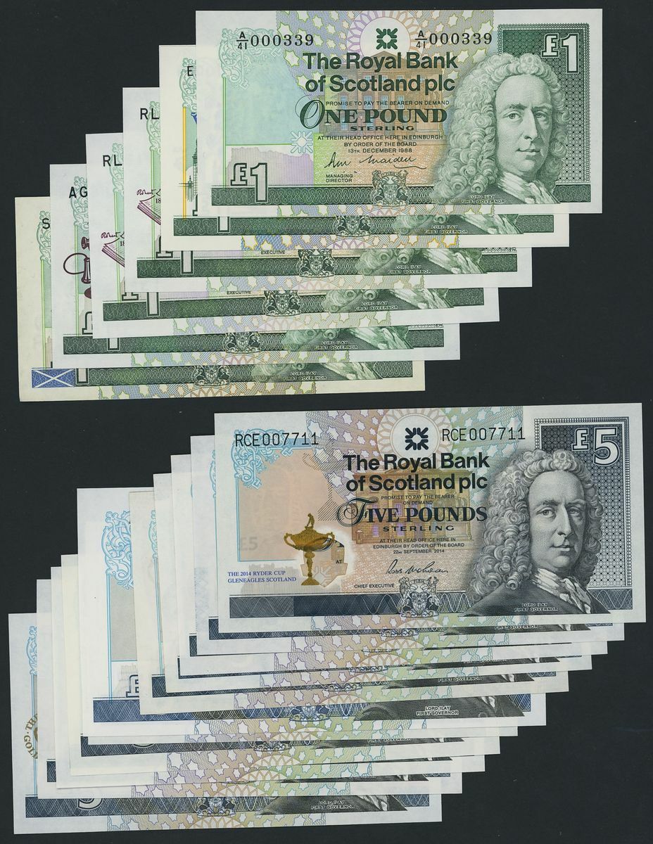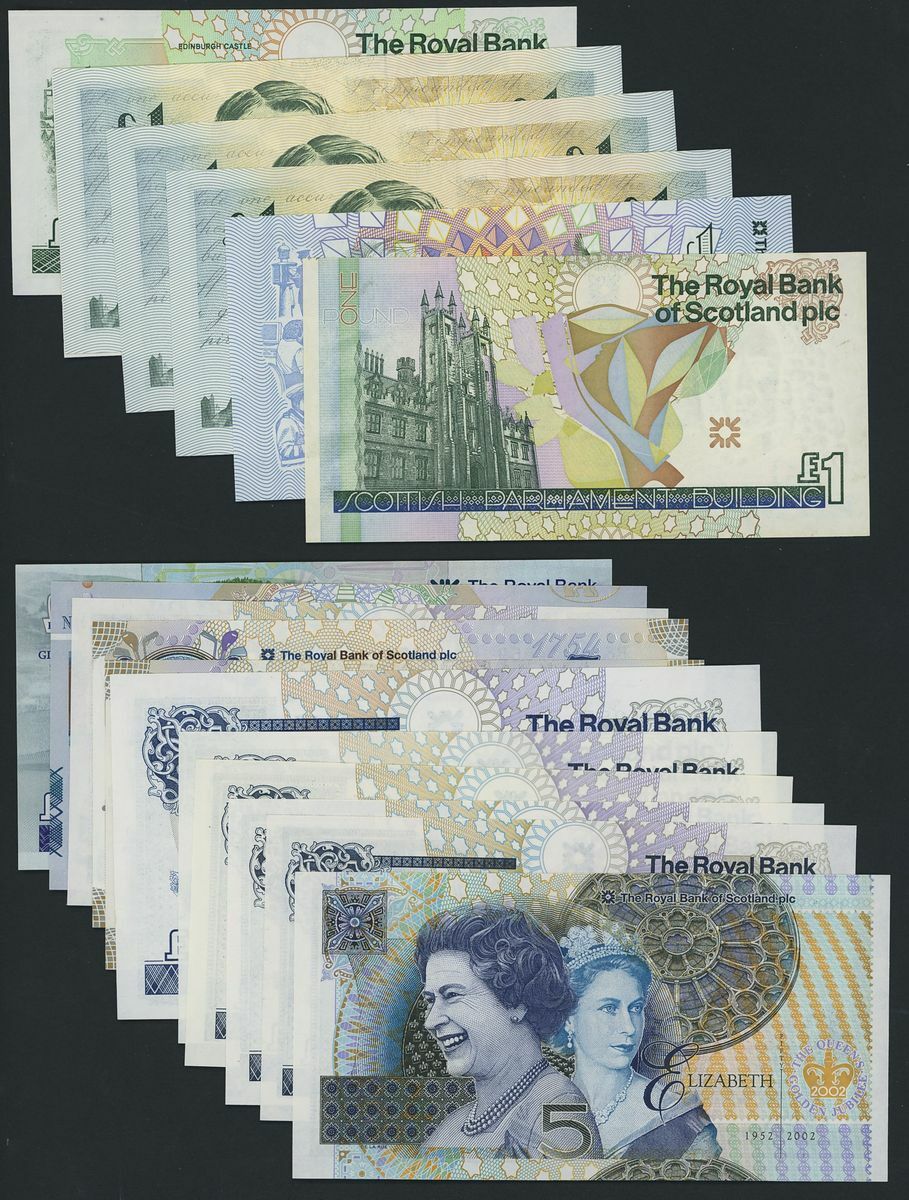 Royal Bank of Scotland, [27 notes] £1, £5, £10, £20, 1987-2012, including pair of consecutive serial numbers RLS0228772-3 (RB 94)