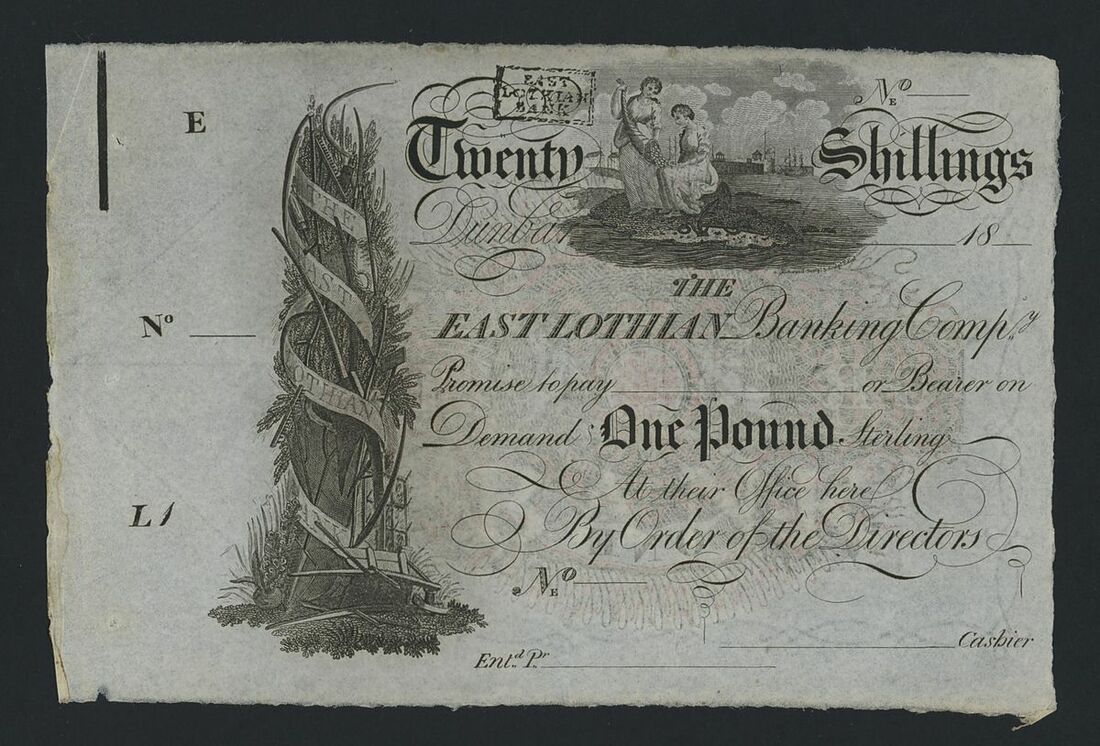 Scotland, East Lothian Banking Company, £1, 18-- (1810-22), intricate designs on the obverse and fantastic colours on the reverse