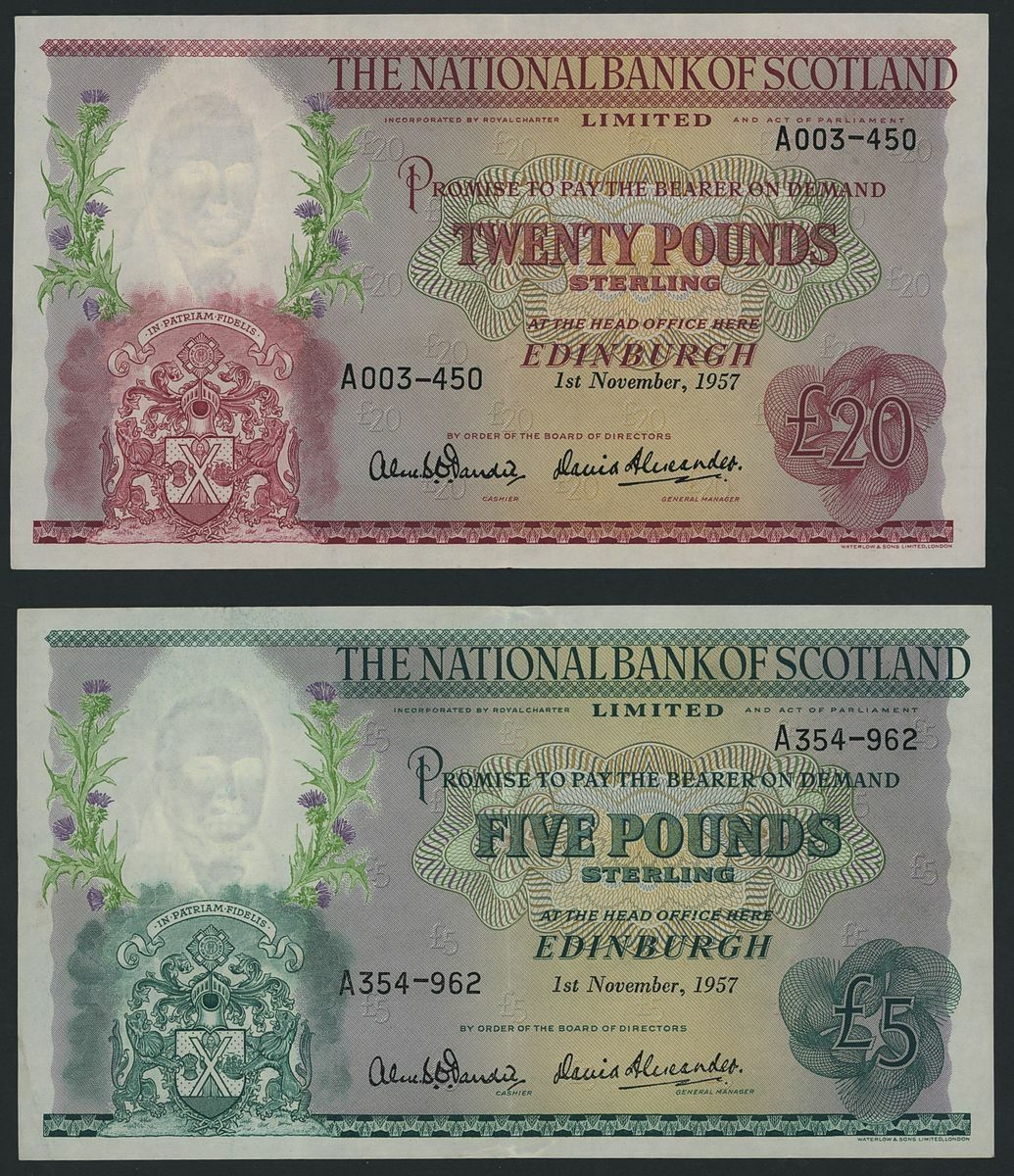 National Bank of Scotland, [15 notes (2 National Bank of Scotland)] £5, £20, 1st November 1957, serial numbers A003-450, A354-962, also includes 13 other assorted Scottish notes