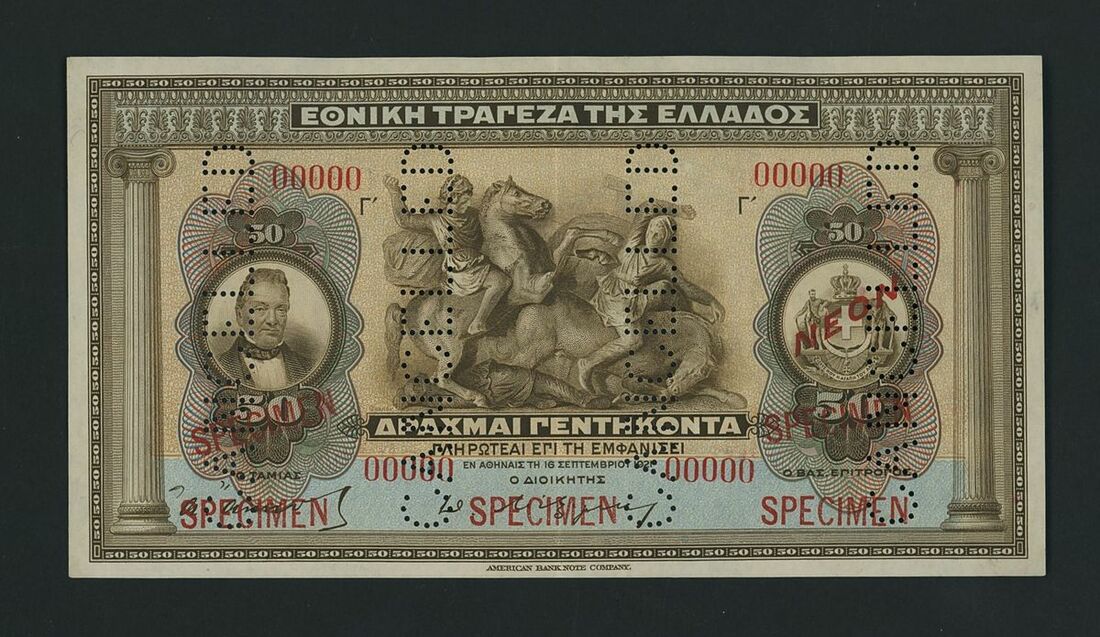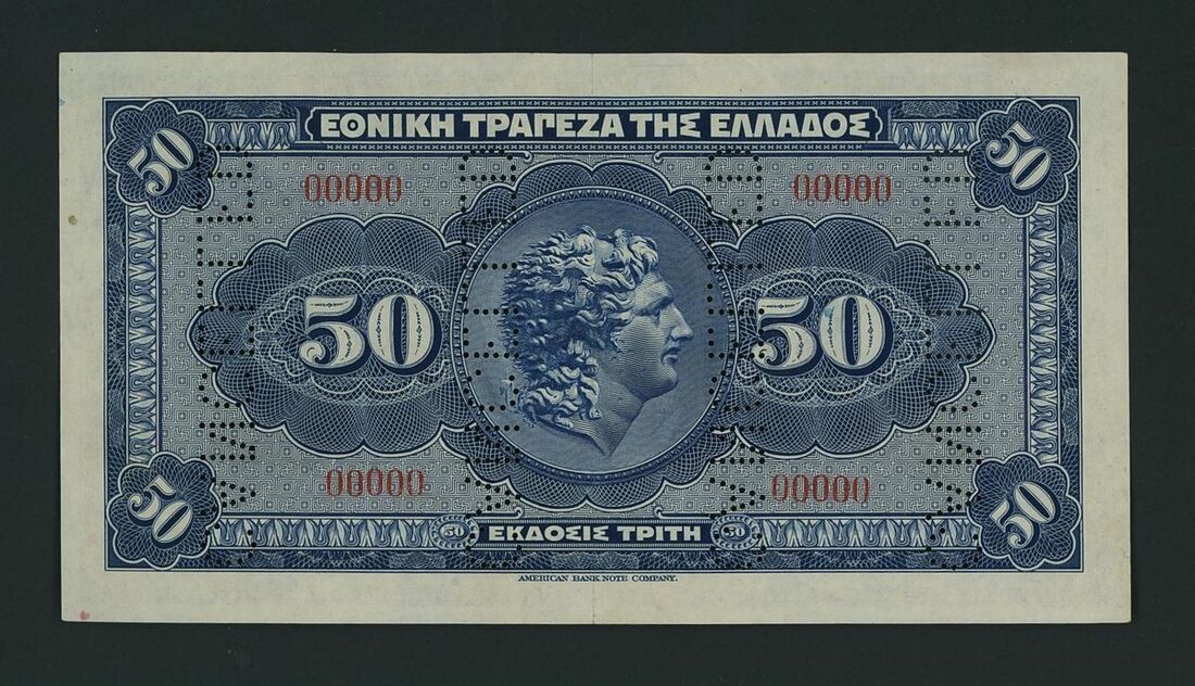 National Bank of Greece, specimen 50 Drachmai, 16th September 1921, serial number 00000, (Pick 66s), about uncirculated