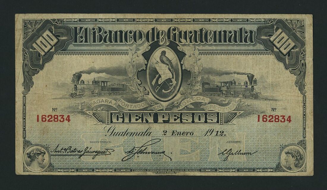 El Banco de Guatemala, 100 Pesos, 2nd January 1912, serial number I62834, (Pick S147c), solid fine