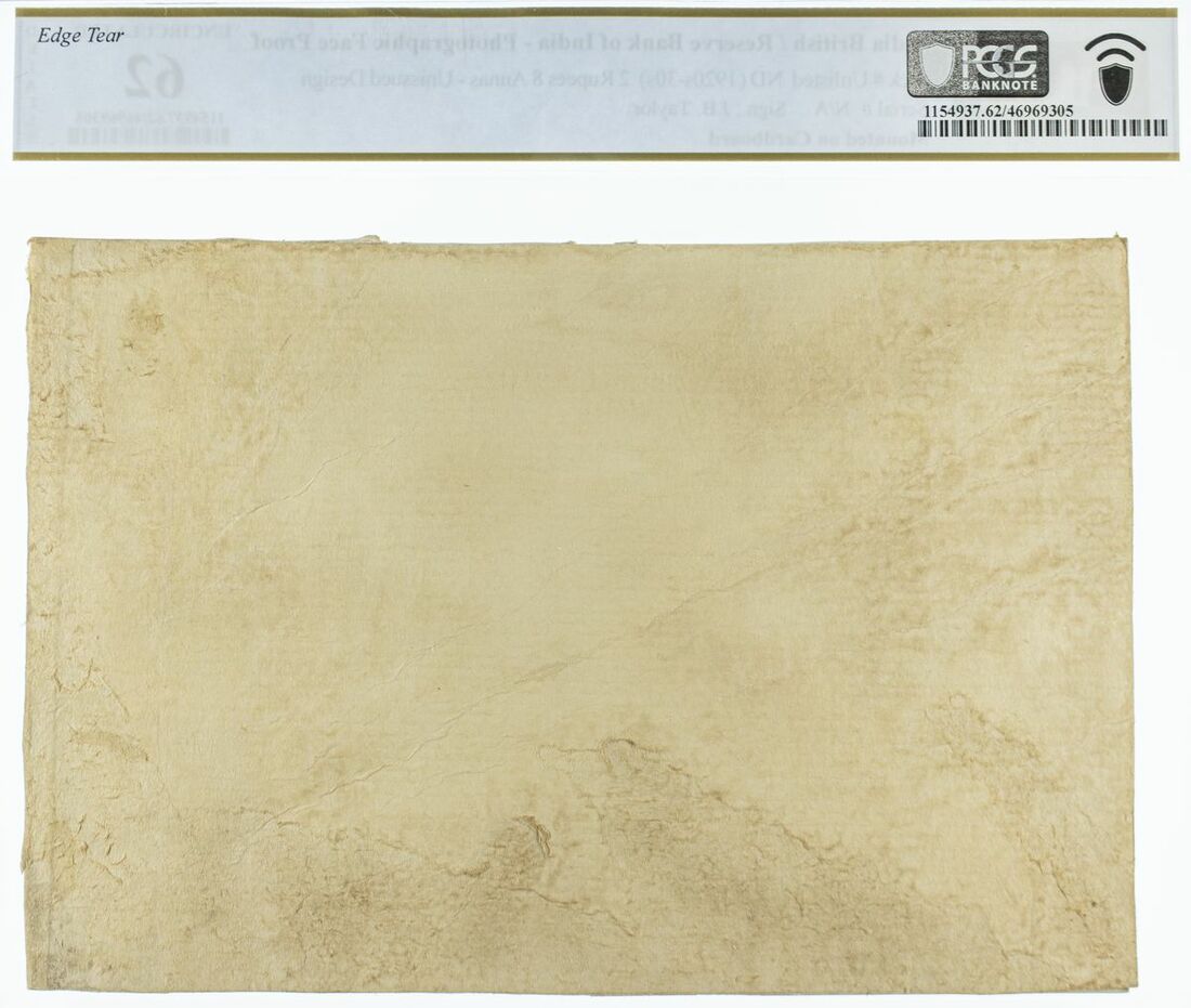 (x) Reserve Bank of India, Photographic Face Proof 2 Rupees 8 Annas, ND (1920´s-30s), no serial number, unissued design, mounted on cardboard