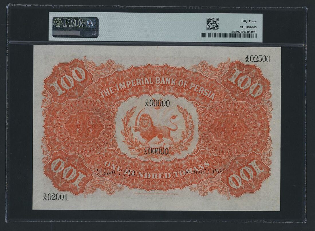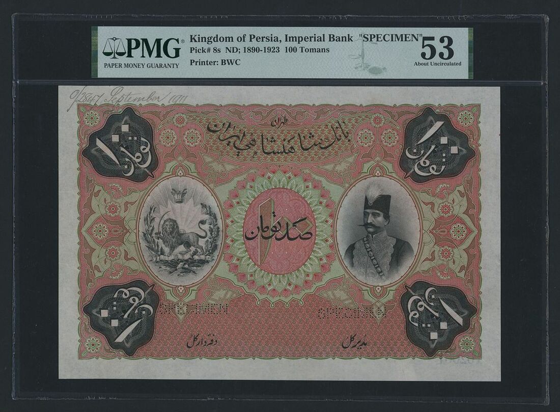 (x) Imperial Bank of Persia, specimen 100 Tomans, 1890-1923, serial number range J/A 02001 - J/A 02500, pencil annotation on the obverse top left margin dates this specimen 28th September 1911