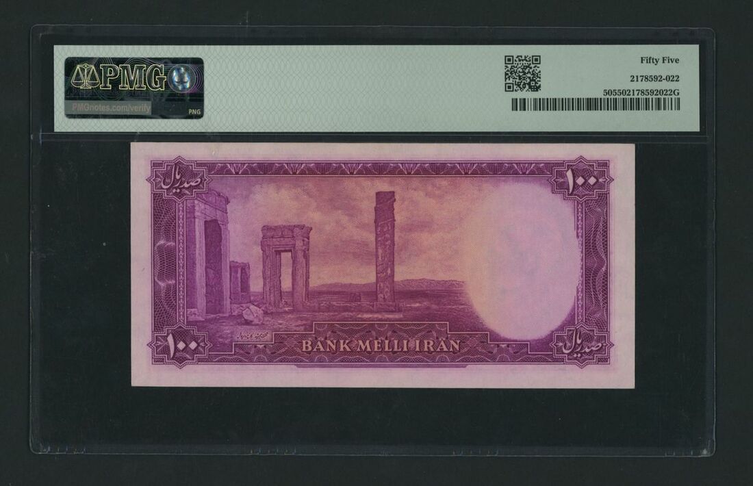 (x) Bank Melli, Iran, 100 Rials, ND (1951), serial number 82/32566, (Pick 50, BNB 145), in PMG holder 55 About Uncirculated