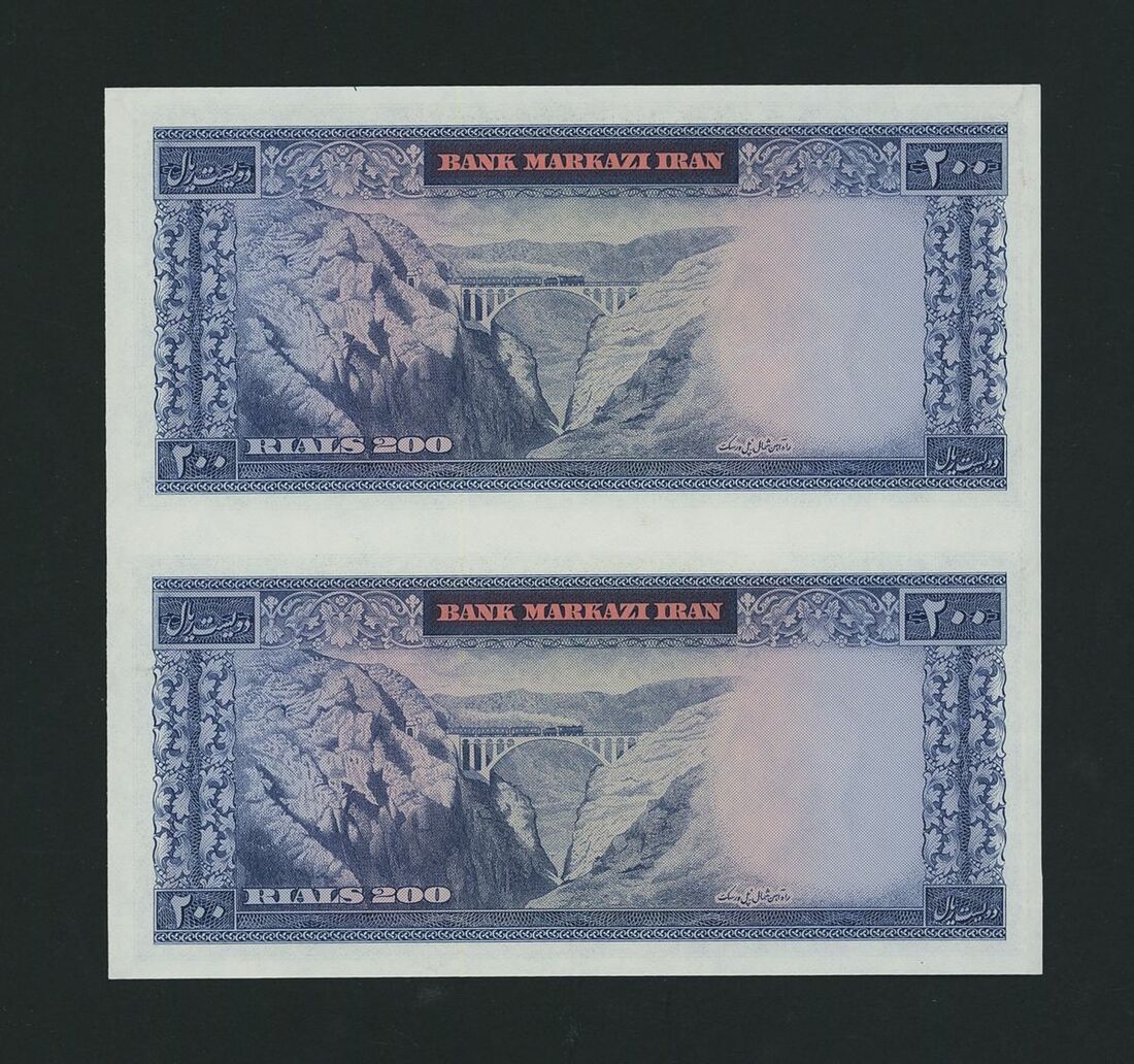 (x) Bank Markazi, Iran, unissued uncut pair of 200 Rials, (Pick 87, BNB 217), uncirculated, rare
