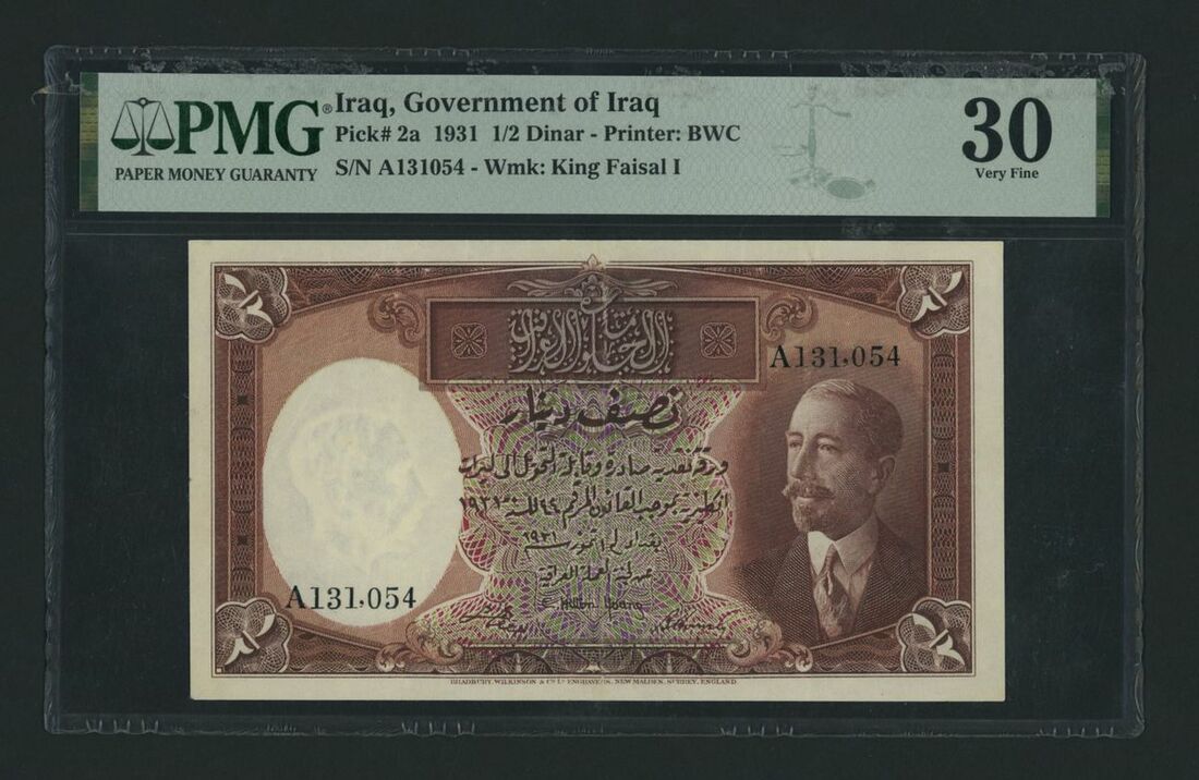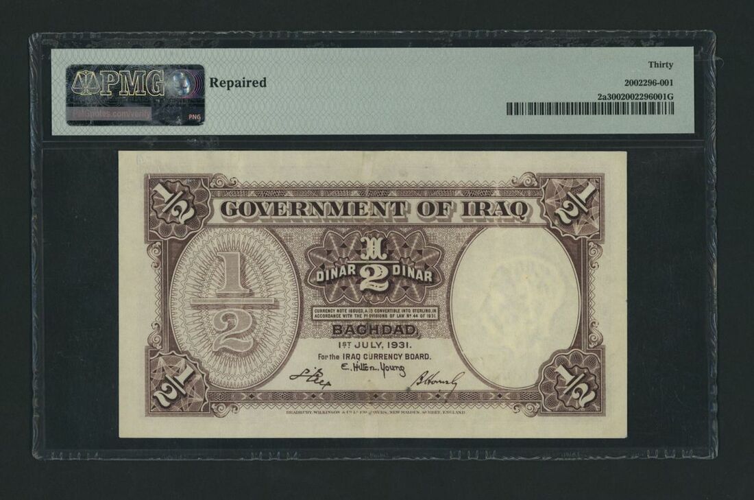(x) Government of Iraq, 1/2 Dinar, Baghdad, 1st July 1931, serial number A131054, (Pick 2a, BNB 102), in PMG holder 30 Very Fine, repaired