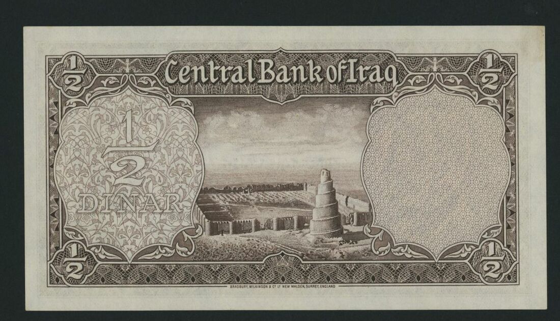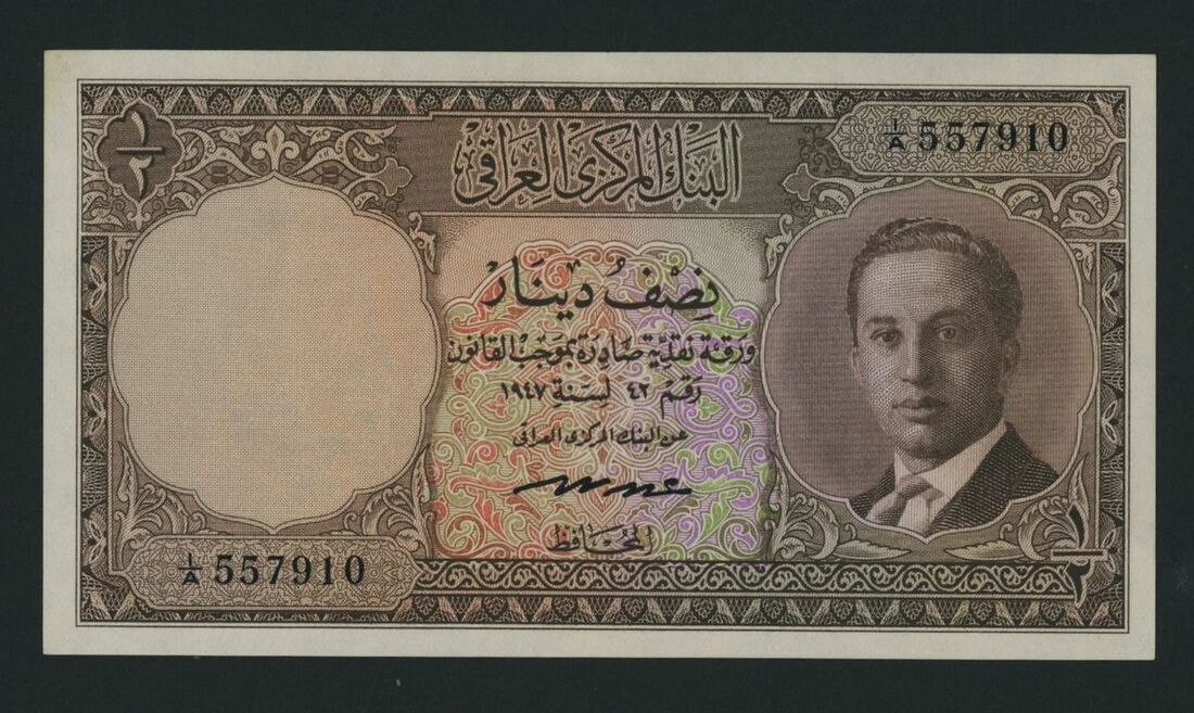 (x) Central Bank of Iraq, 1/2 Dinar, 1947 (ND 1959), serial number 1/A 557910, (Pick 43, BNB 302), good extremely fine
