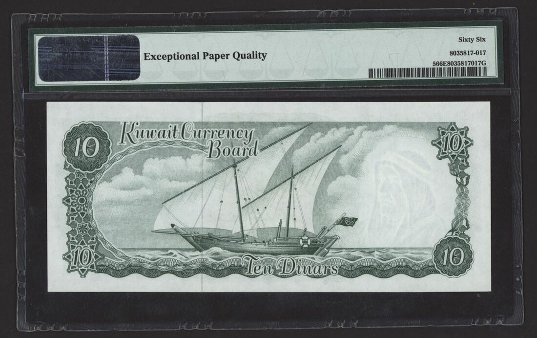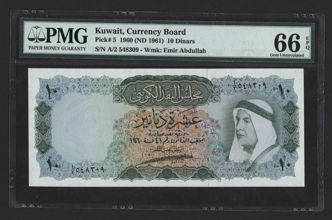 (x) Kuwait Currency Board, 10 Dinars, 1960 (ND 1961), serial number A/2 548309, (Pick 5, BNB 105), in PMG holder 66 EPQ Gem Uncirculated