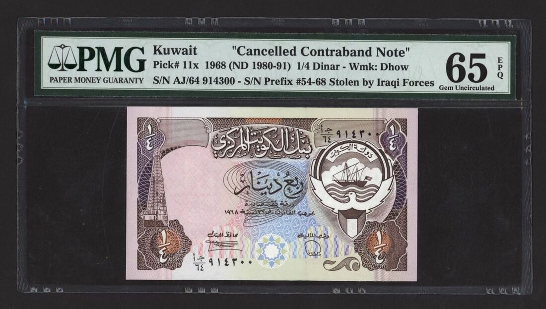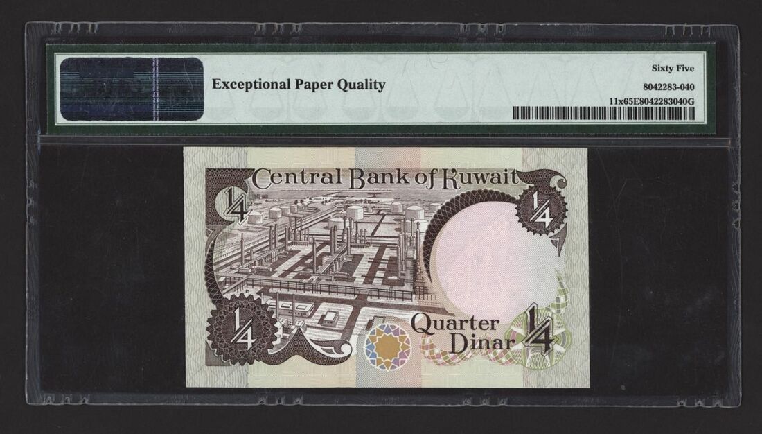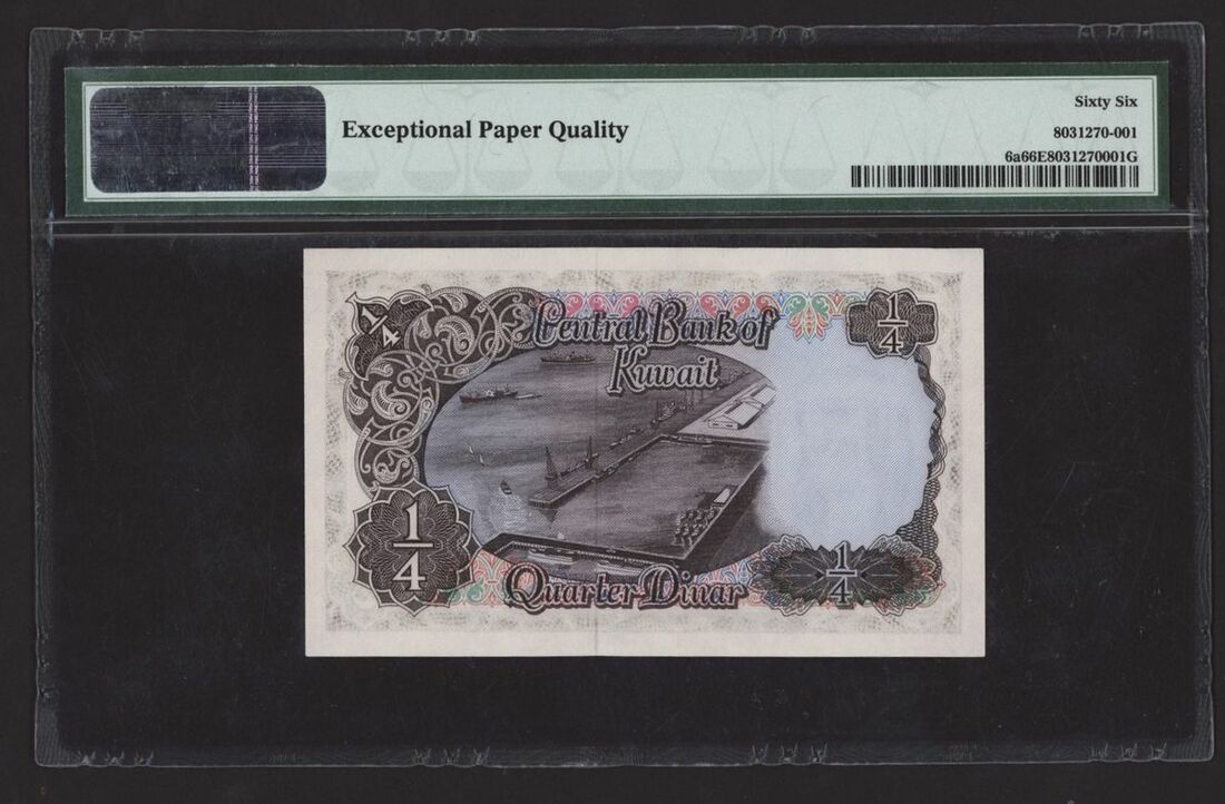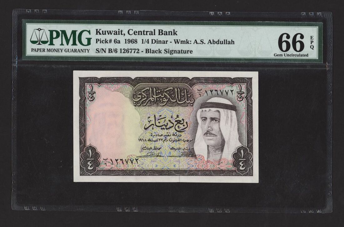 (x) Central Bank of Kuwait, [5 notes] 1/4, 1/2, 1 Dinar, 1968-2001, 1/4 Dinar, 1968, serial number B/6 126772,