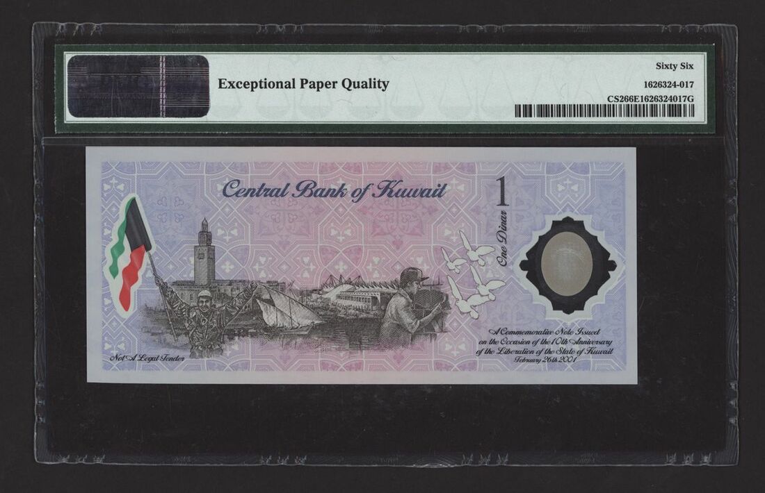1 Dinar, 2001, serial number CB242056 - Polymer