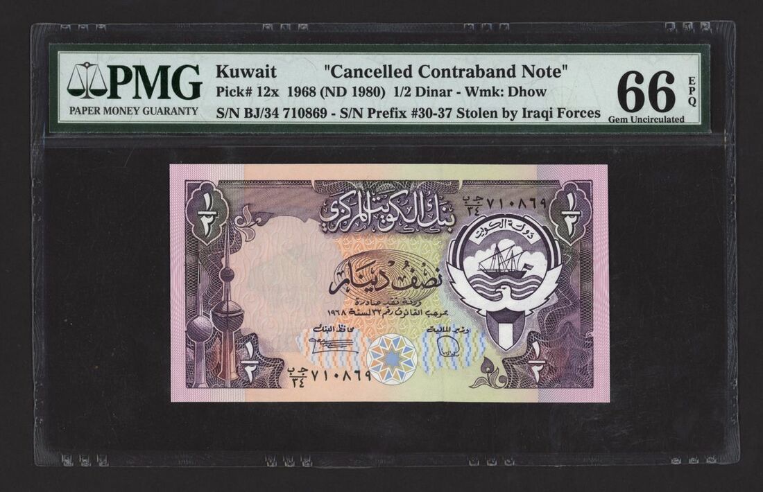 1/2 Dinar, 1968 (ND 1980), serial number BJ/34 710869,
