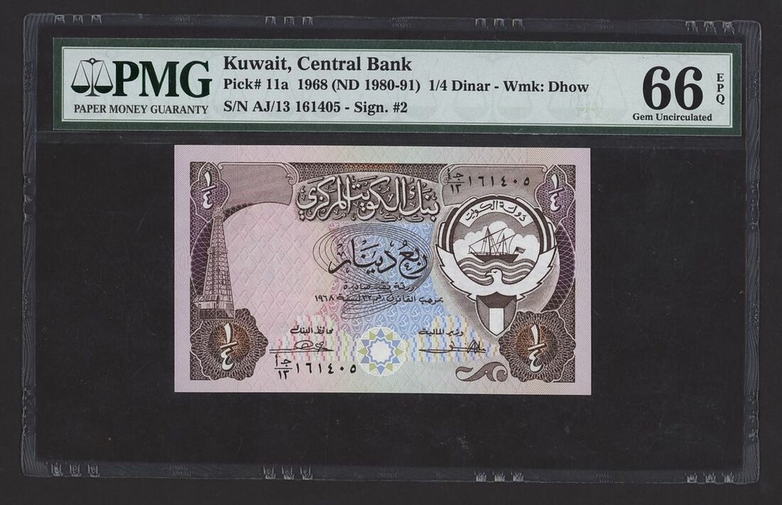(x) Central Bank of Kuwait, [6 notes] Complete set of the Third Issues, Law 1968/32 (1980-1986), 1/4 Dinar, 1968 (ND 1980-91), serial number AJ/13 161405,