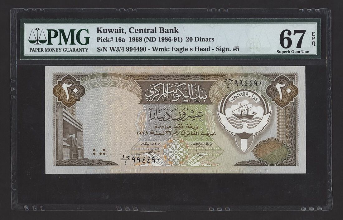 20 Dinars, 1968 (ND 1980-91), serial number WJ/4 994490