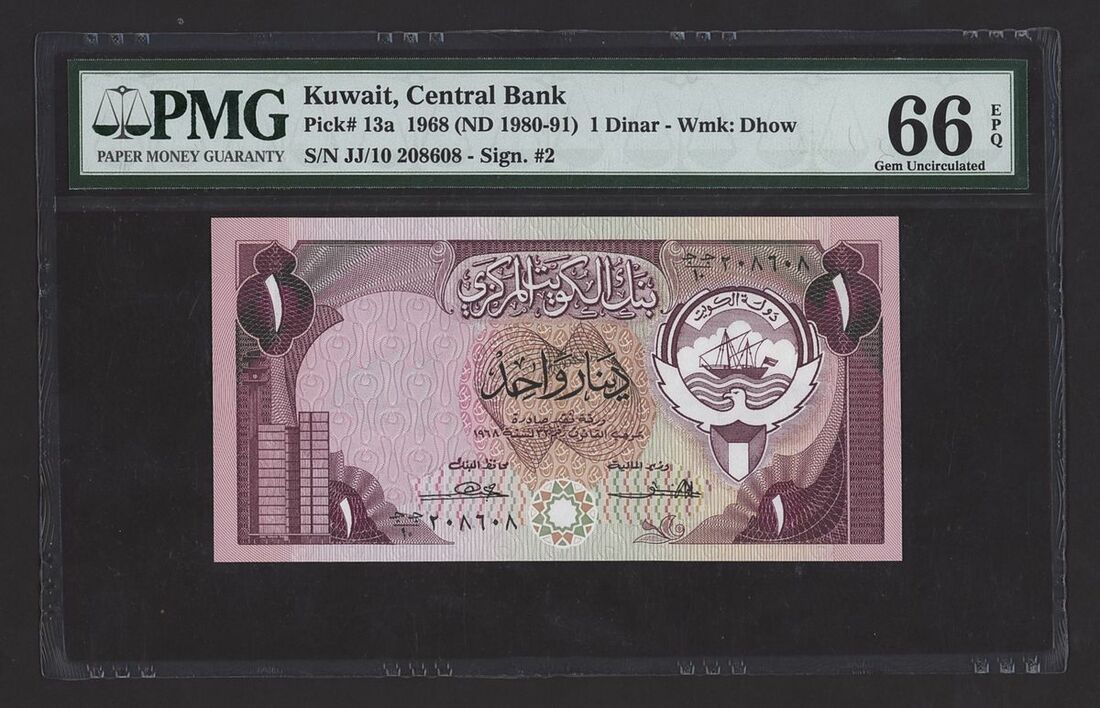 1 Dinar, 1968 (ND 1980-91), serial number JJ10 208608