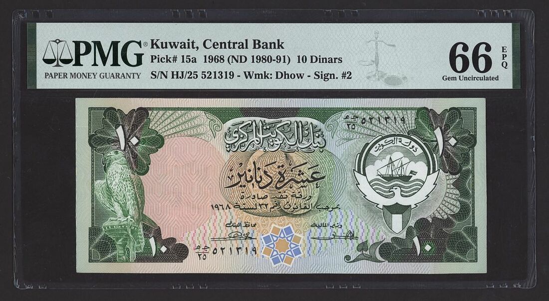 10 Dinars, 1968 (ND 1980-91), serial number HJ/25 521319,