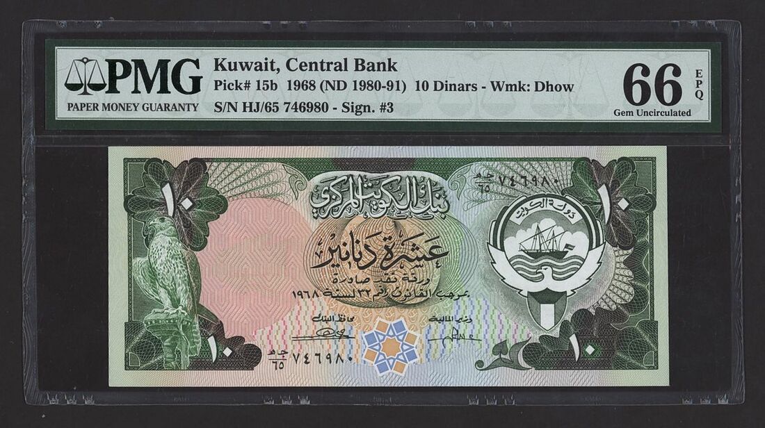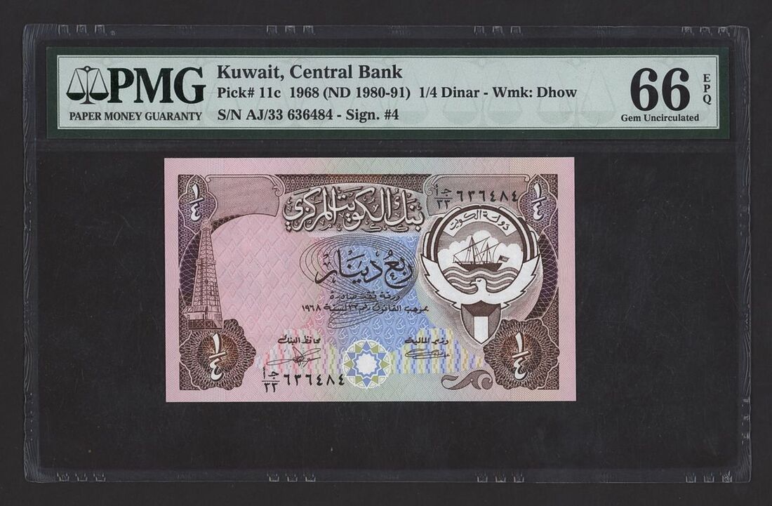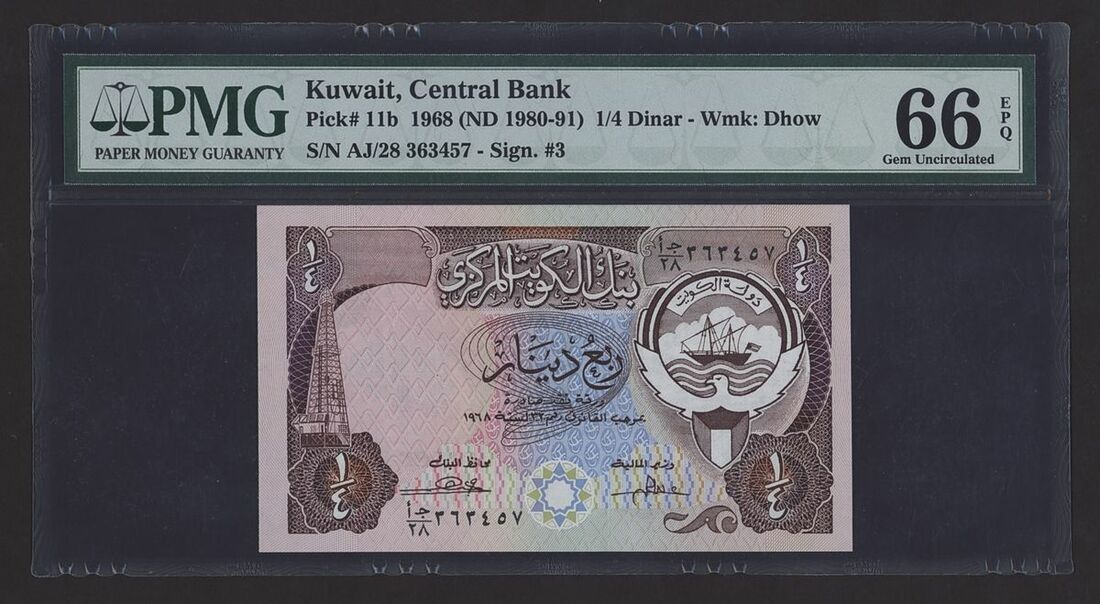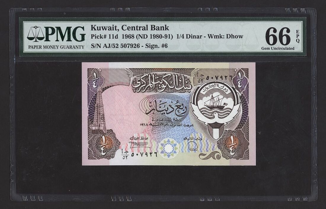 (x) Central Bank of Kuwait, [7 notes] Group from the Third Issues, Law 1968/32 (1980-1986), 1/4 Dinar, 1968 (ND 1980-91), serial number AJ/28 363457,
