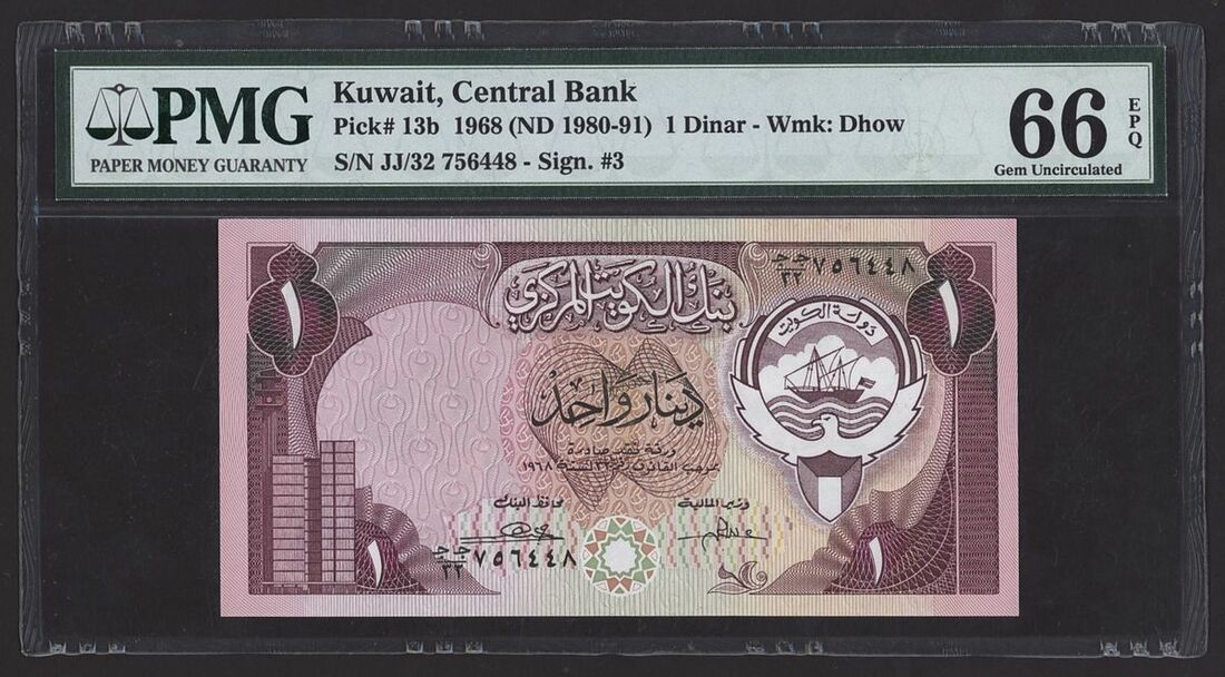 1 Dinar, 1968 (ND 1980-91), serial number JJ/32 756448,