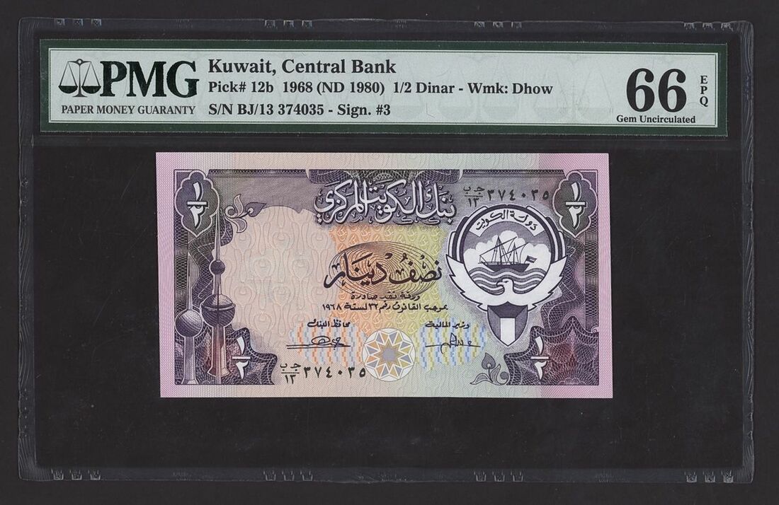 1/2 Dinar, 1968 (ND 1980), serial number BJ/13 374035,