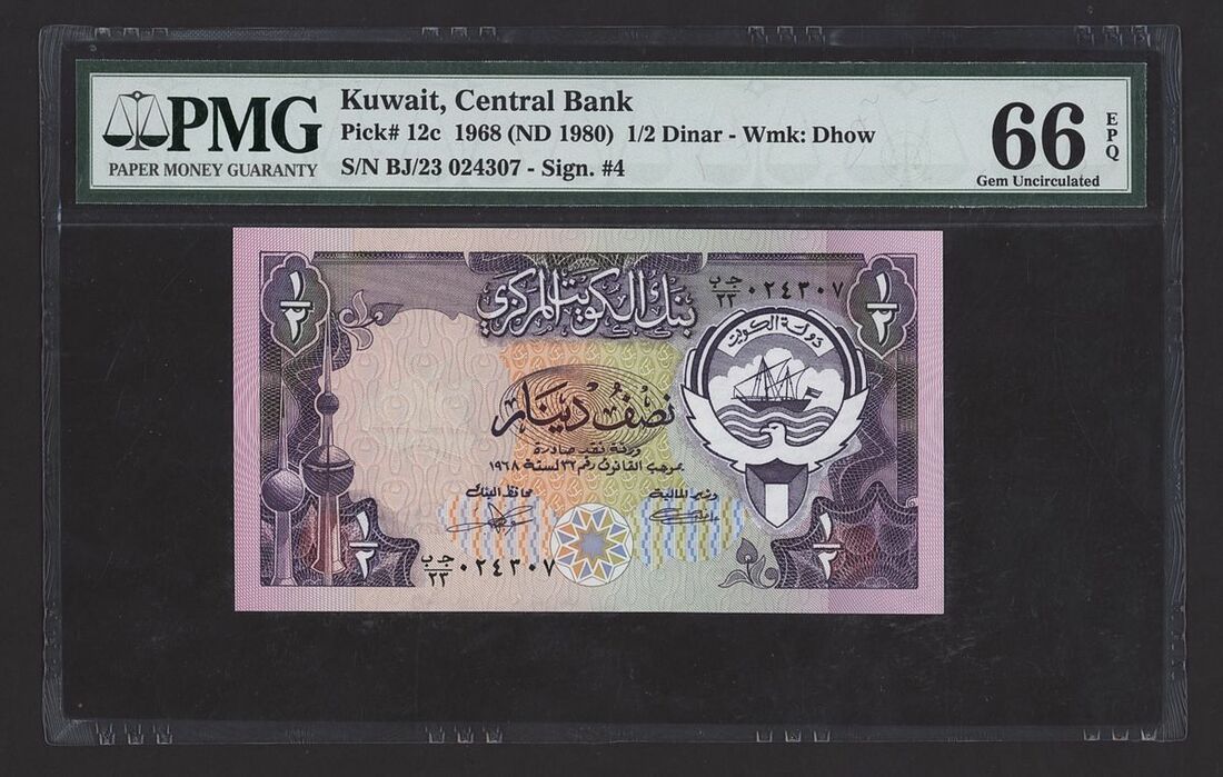 1/2 Dinar, 1968 (ND 1980), serial number BJ/23 024307,