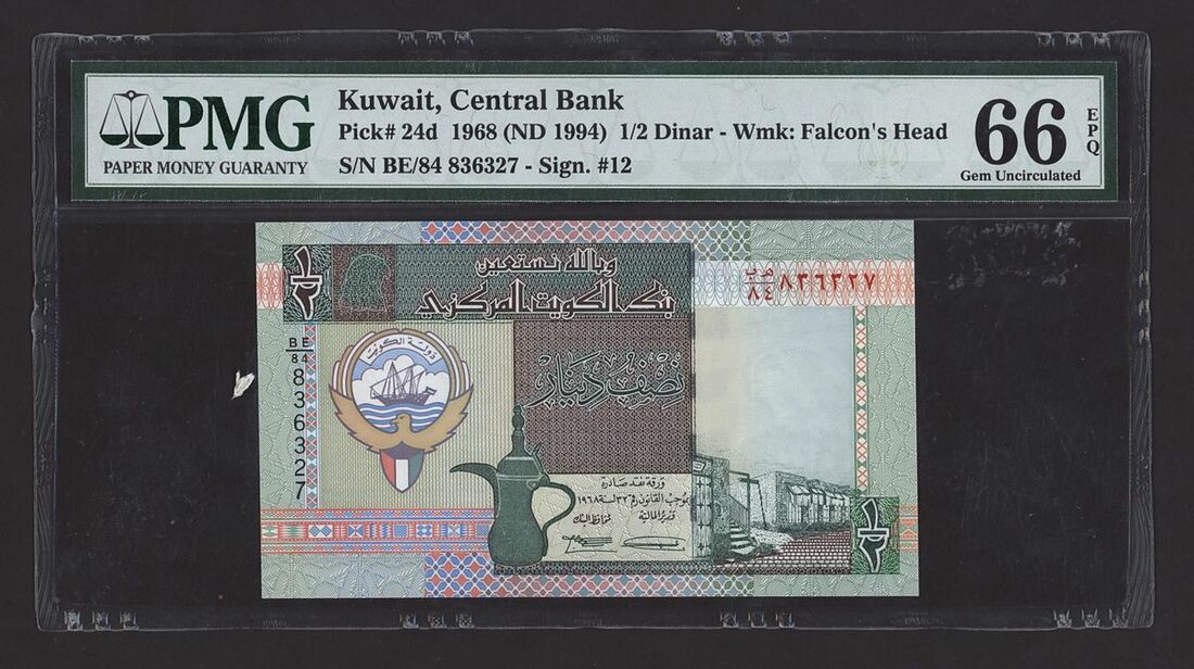 1/2 Dinar, 1968 (ND 1994), serial number BE/84 836327,
