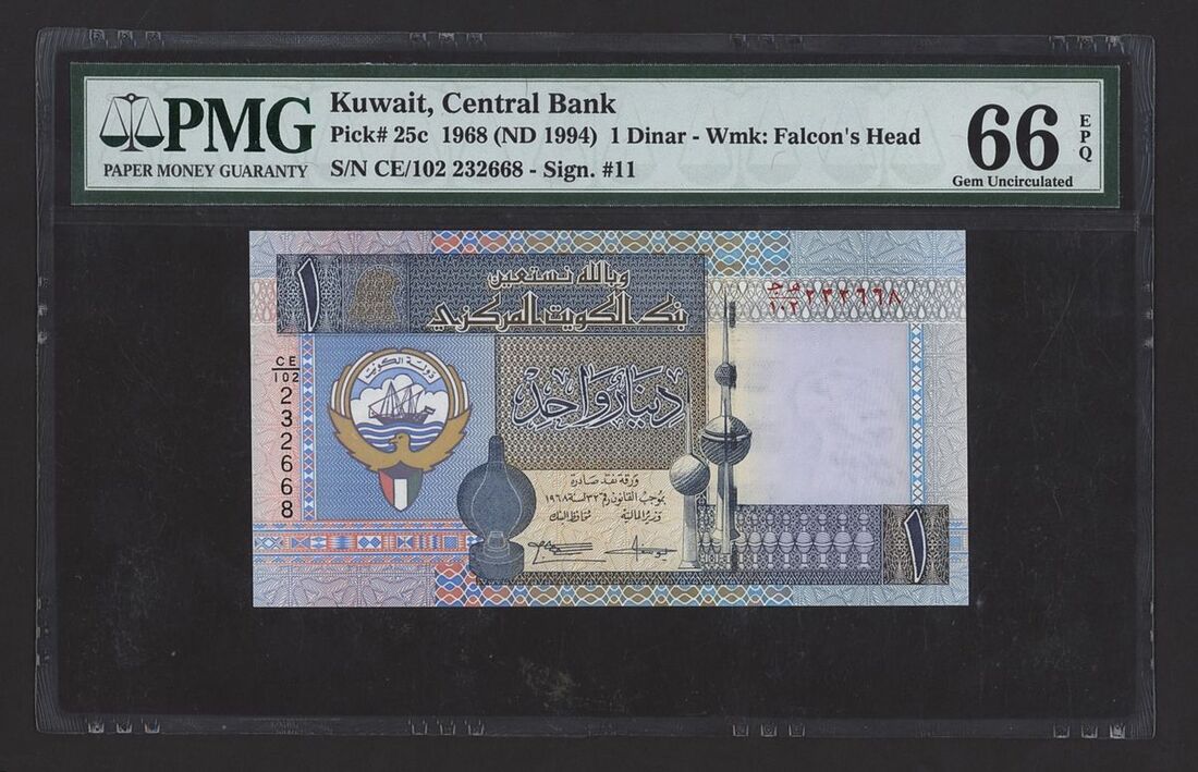 1 Dinar, 1968 (ND 1994), serial number CE/102 232668,