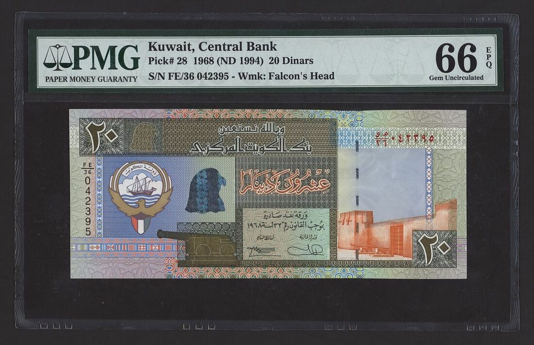 20 Dinars, 1968 (ND 1992), serial number FE/36 042395