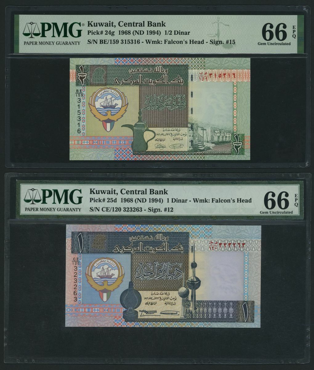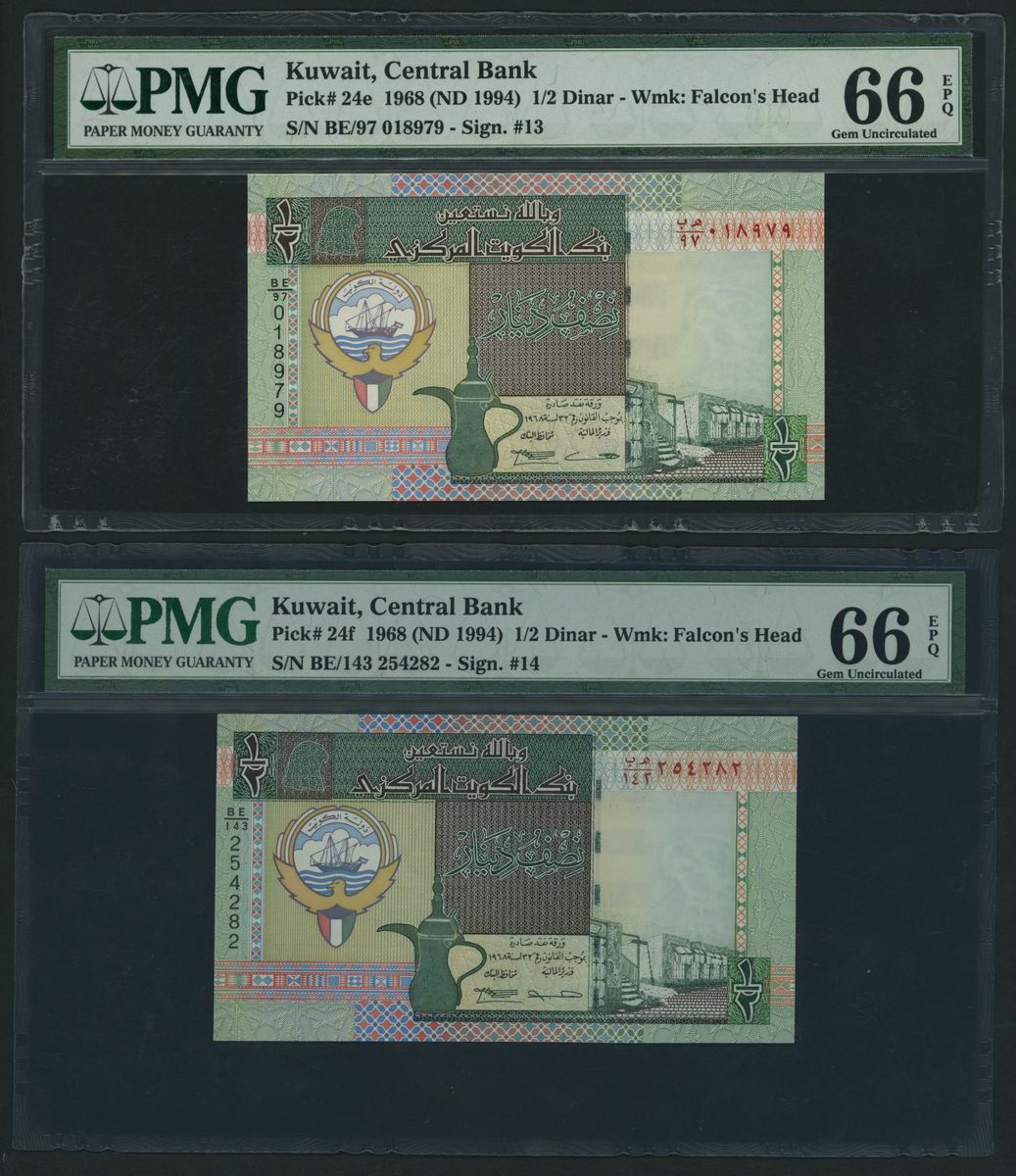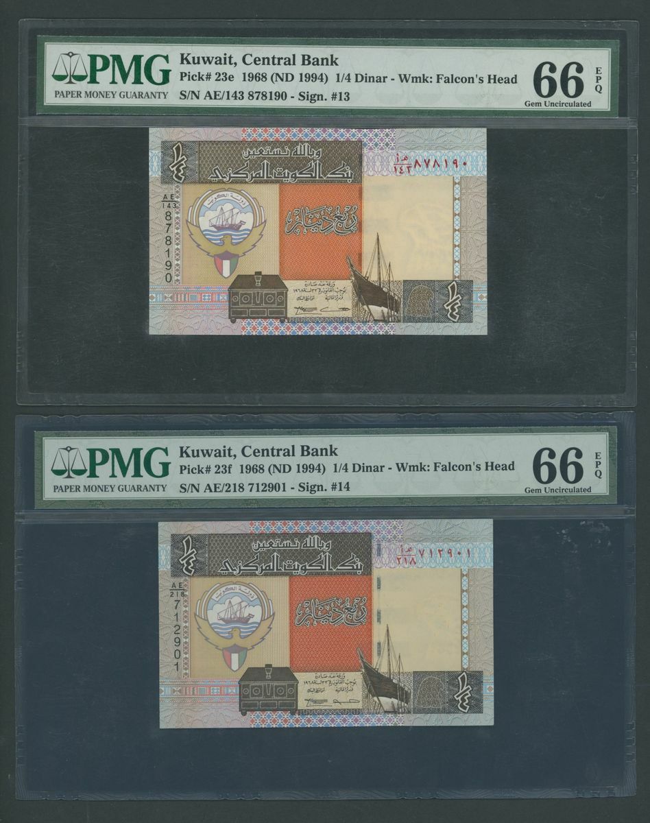 (x) Central Bank of Kuwait, [10 notes] Group from the (1994) Fifth Issues, 1/4 Dinar, 1968 (ND 1994), serial number AE/143 878190,