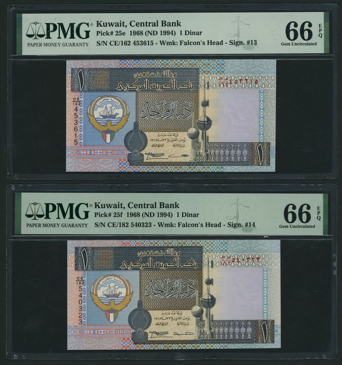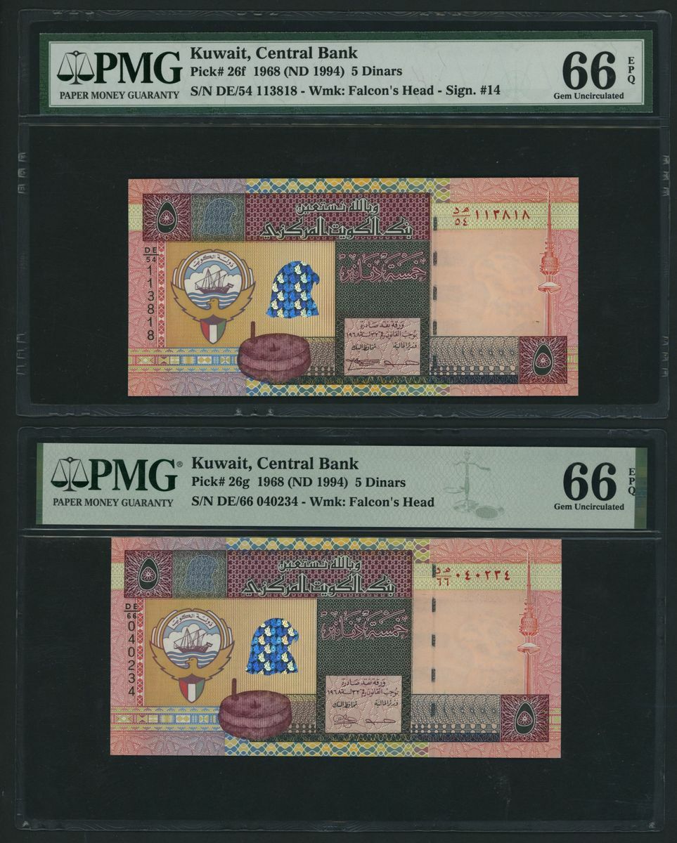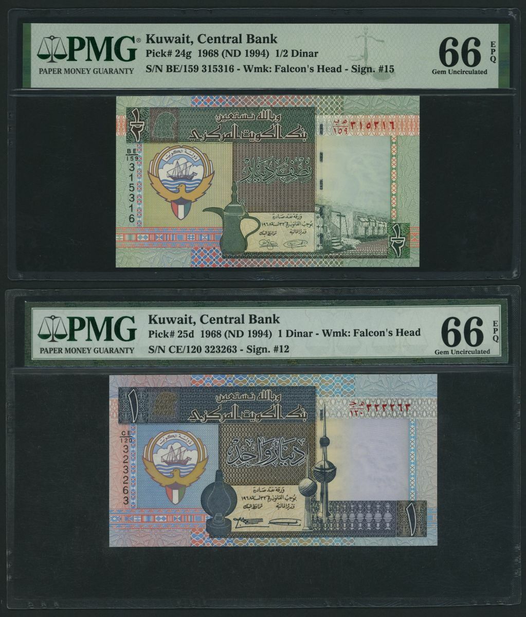 (x) Central Bank of Kuwait, [10 notes] Group from the (1994) Fifth Issues, 1/4 Dinar, 1968 (ND 1994), serial number AE/143 878190,